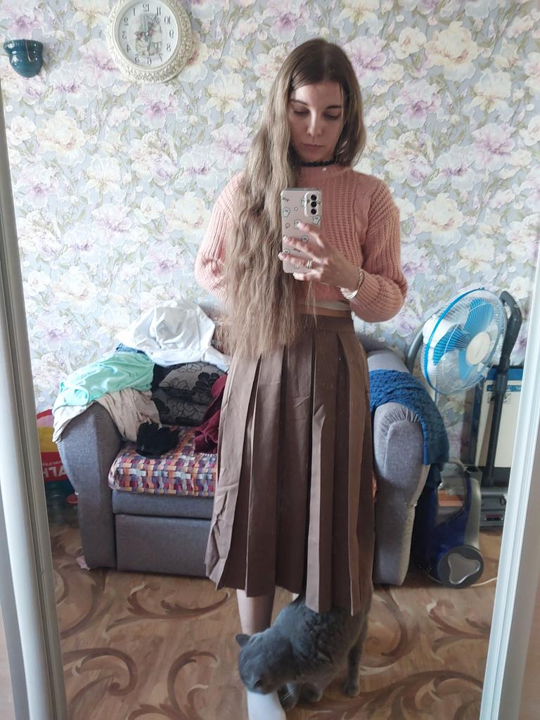 The skirt pleasantly surprised me with its good quality, namely, the fabric is quite thick, quite heavy - therefore, autumn! The tailoring is impeccable. The only thing I would like is for the pleats to be in the back - my skirt doesn't have them (on the model, some skirts have pleats at the back, others without pleats - I was unlucky🥴). Size L fit. My parameters: waist 74 cm, hips 96 cm, height 159 cm. I tried on the skirt as soon as I unpacked it, that is, it is not ironed in the photo - I apologize. The skirt came with a gift from the seller - a cool hair clip ❤️. Thanks to the seller ❤️ and thanks to Joom ❤️
