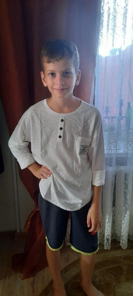 For an 8-year-old, I took size 150, beautiful material - cotton.