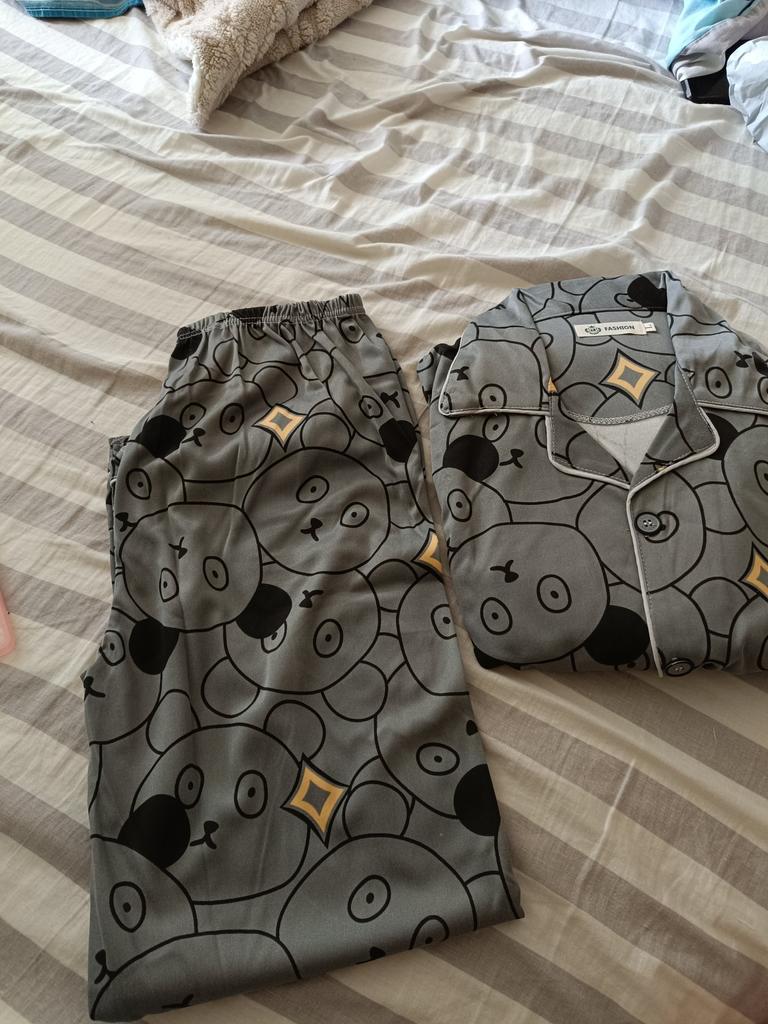 very lovely panda 🐼 pattern on a grey background and very soft to touch plus nice and comfortable to wear plus they wash clean in the Washing machine a real treat