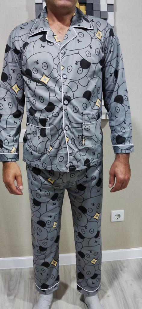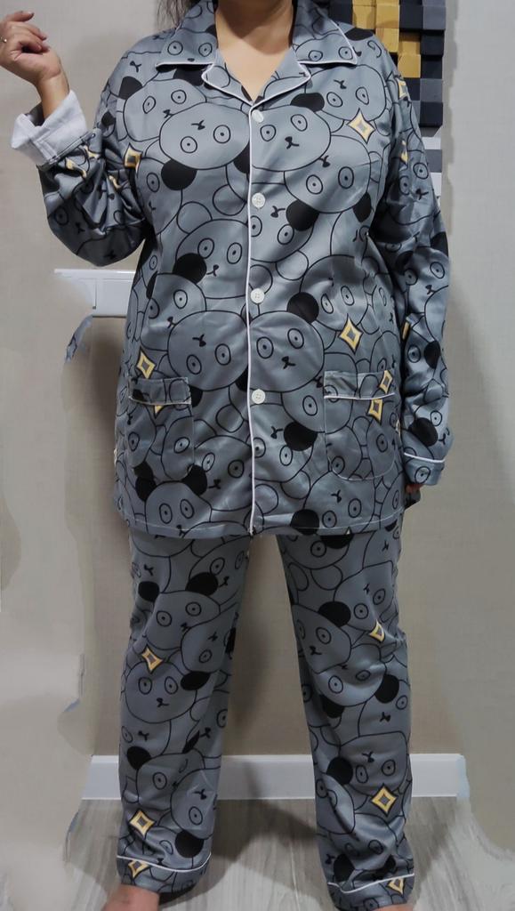 very nice grey sleeve and trouser pajamas with a bami/dear motif on a grey background