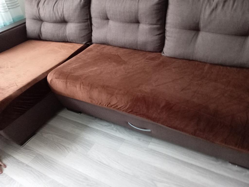 Absolutely does not correspond to the product in the photo and description. One-piece bedspread, 1m wide. 1.9 m long with an elastic band and not chocolate color, but light brown. In the photo, the product is chocolate-colored, the quality is thick on a thick base and there are separate parts for the back and the main seat of the sofa. And the received product is a one-piece blanket with an elastic band, 1 piece. light brown color, does not at all correspond to the proposed product in the photo. Please accept the return.