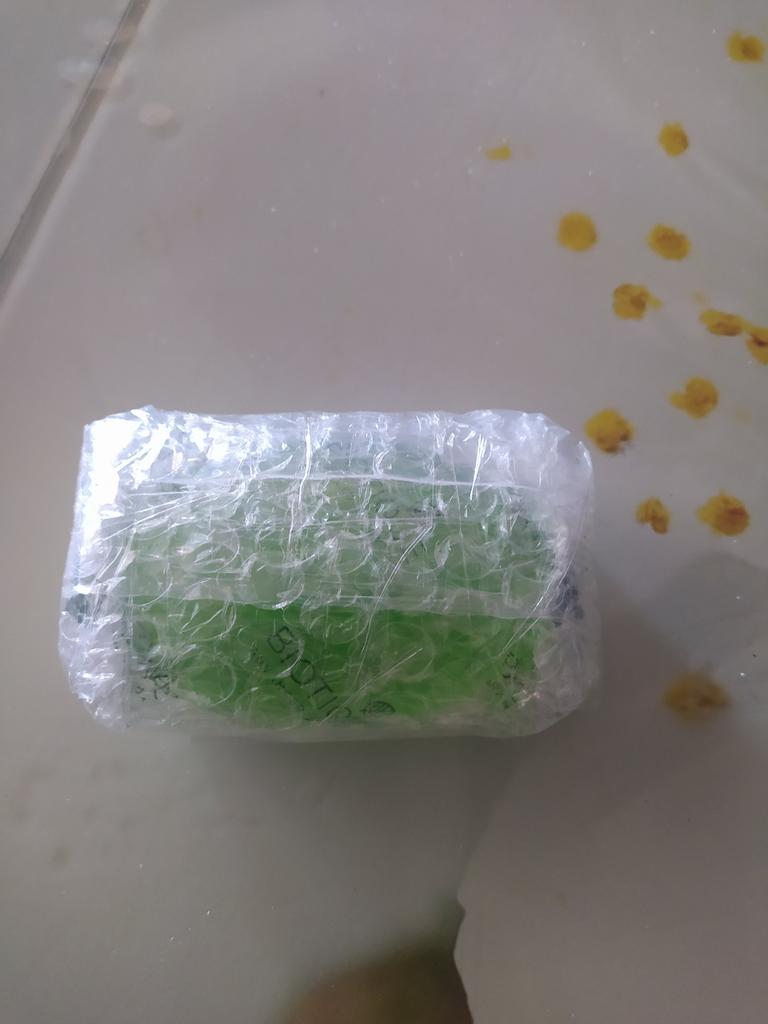 The soap comes simply wrapped in foil and costs 7.57 euros for customs and expenses.