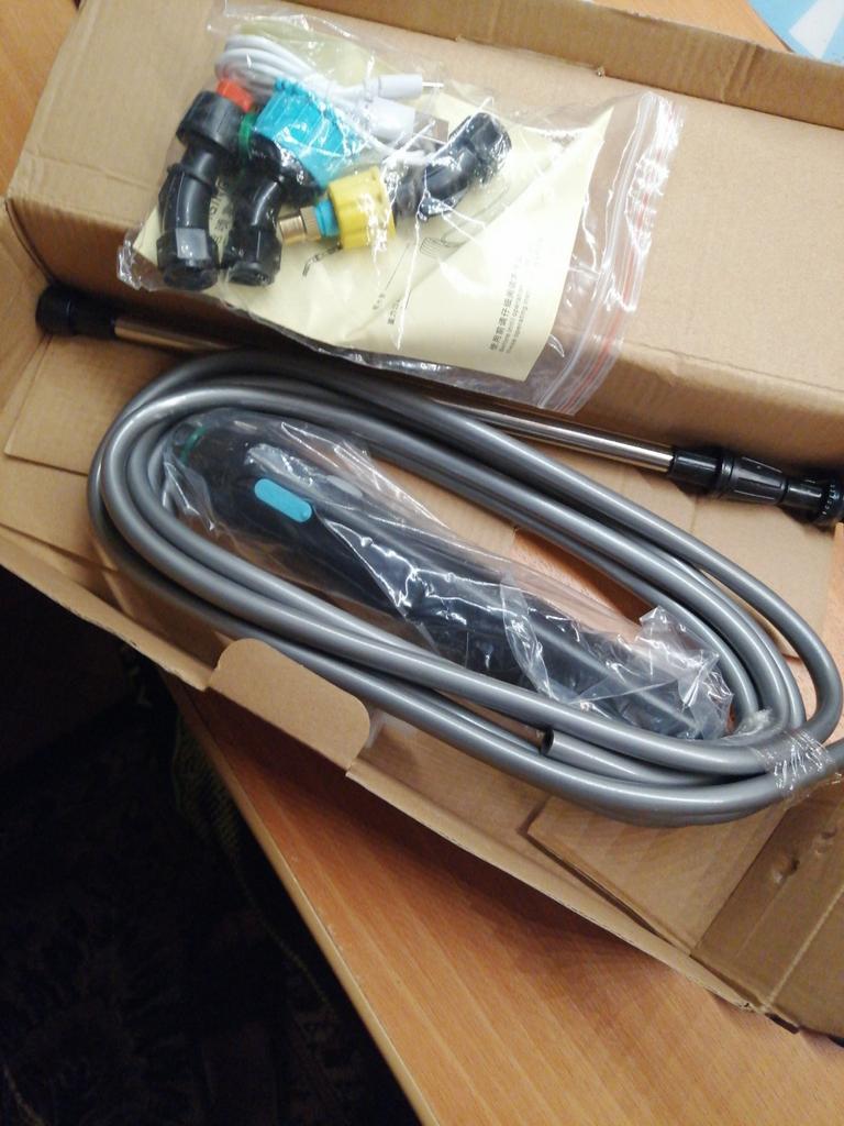 Delivered quickly, complete as in the picture, I will try it soon when the temperature rises and I need to spray the bushes and trees