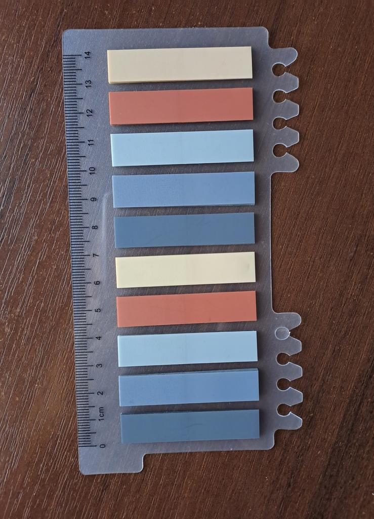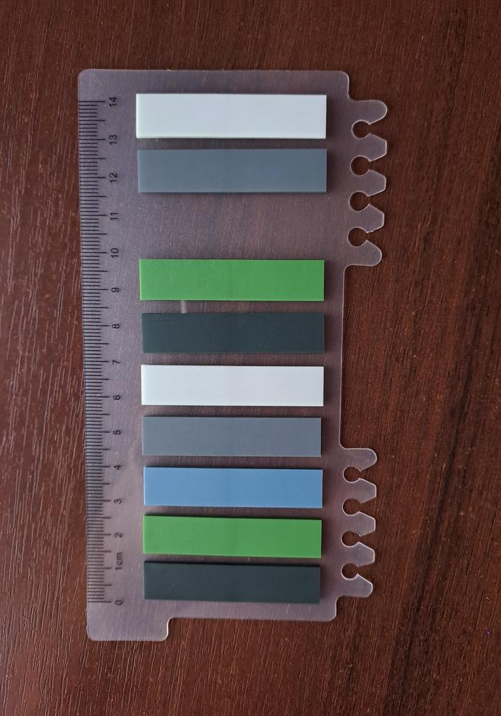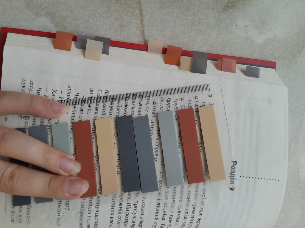 It is very unfortunate that the seller sent an incomplete set of stickers. The exact color I needed is missing. From the general characteristics: the stickers do not tear the paper when peeling off, you can read the text through them, the colors are generally good.