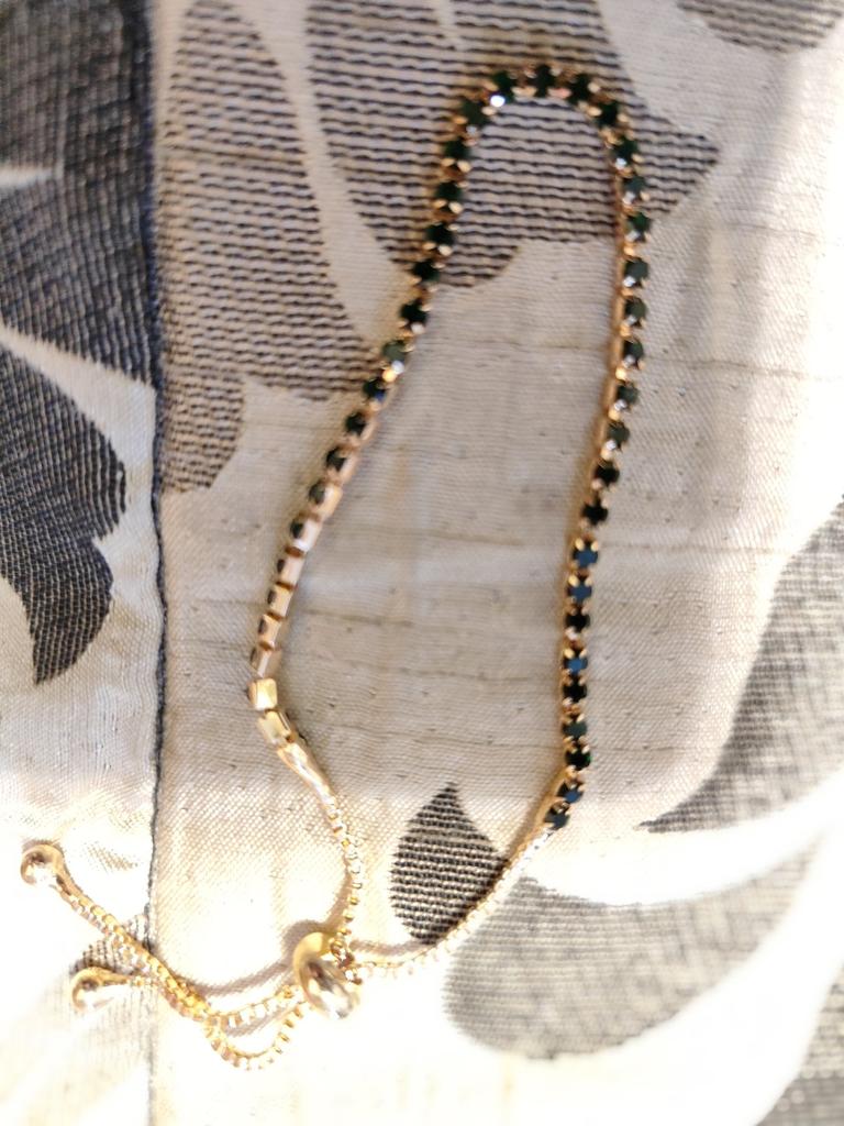 The bracelet is beautiful, the black stones on the golden metal look very contrasting