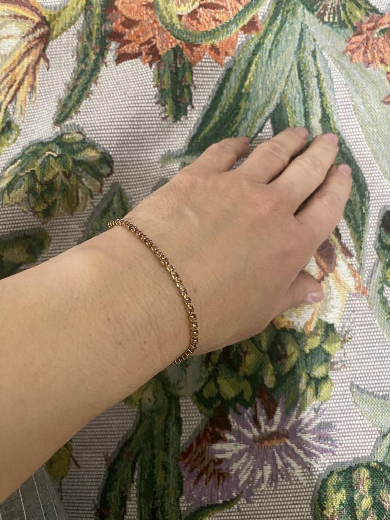 The bracelet is very thin and small, I barely managed to pull it onto my hand, but it looks good.