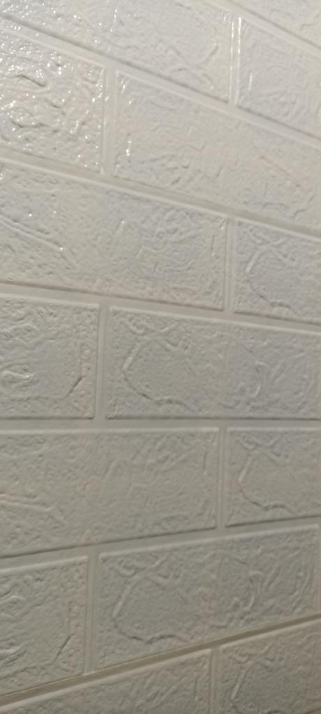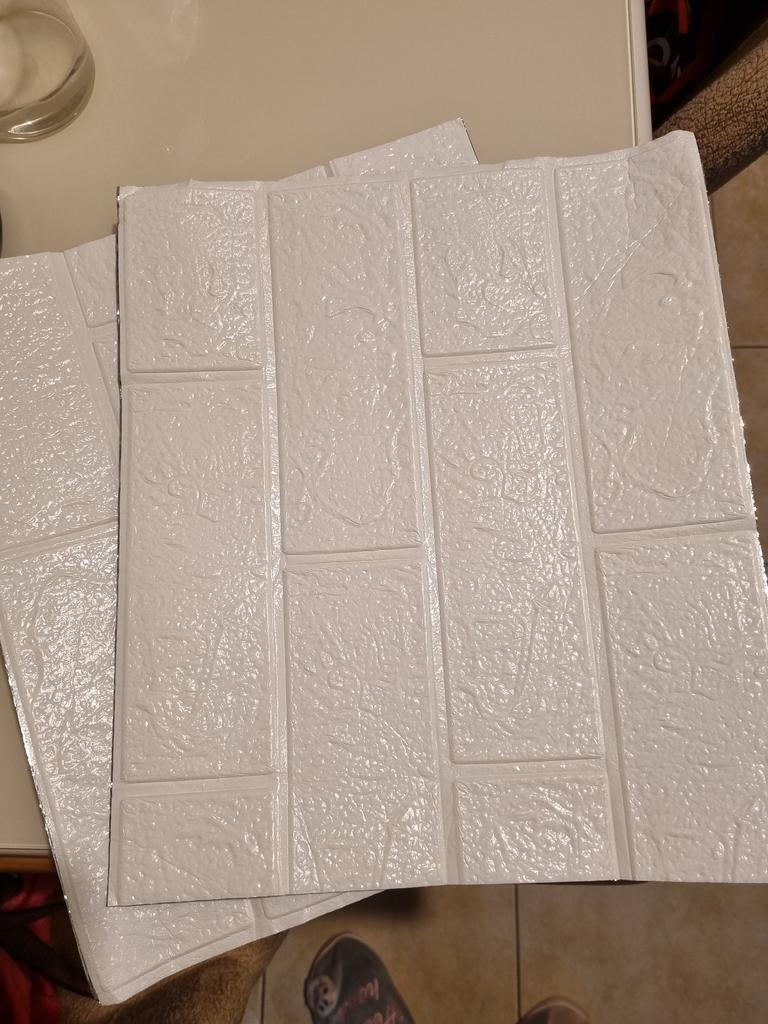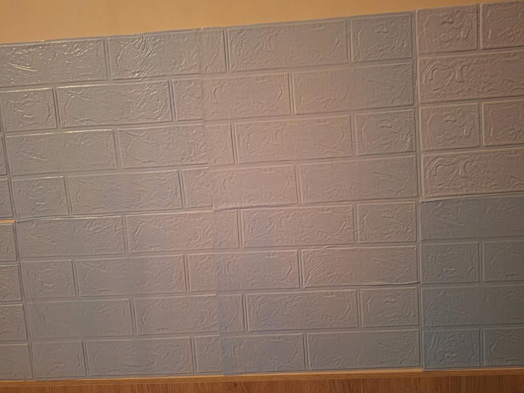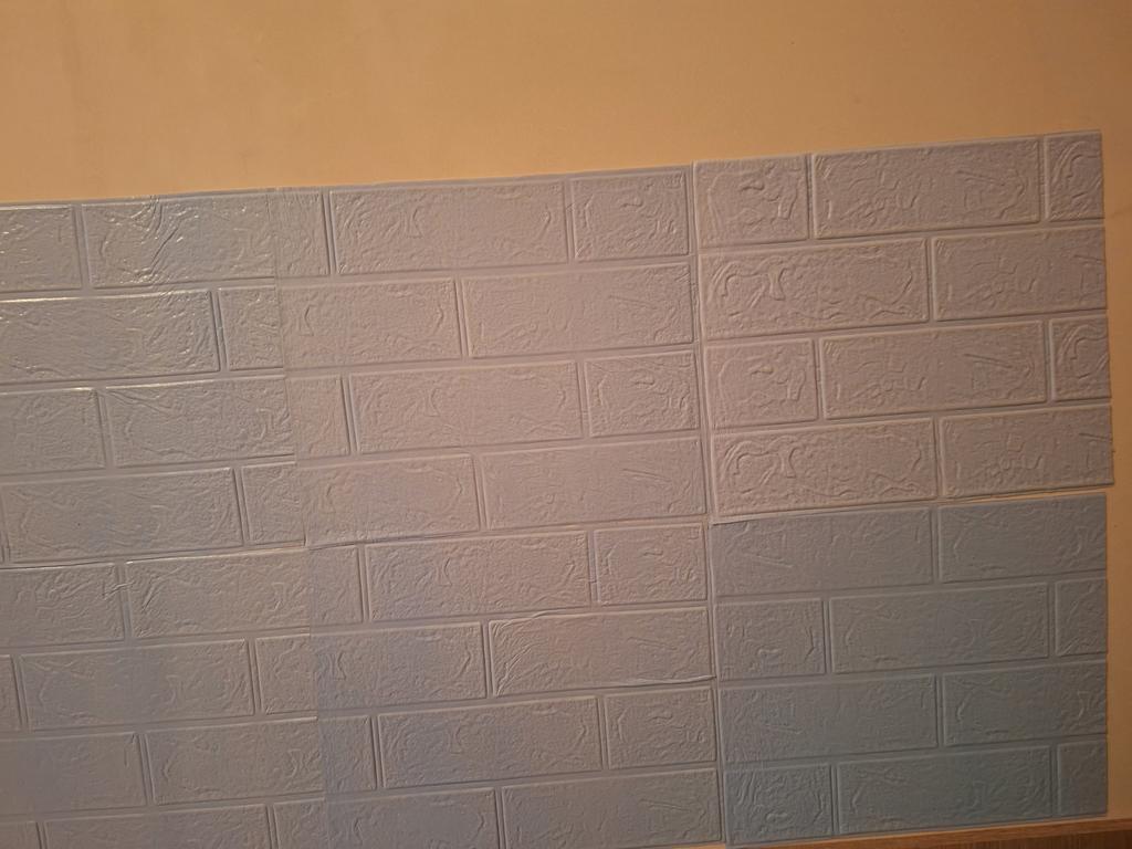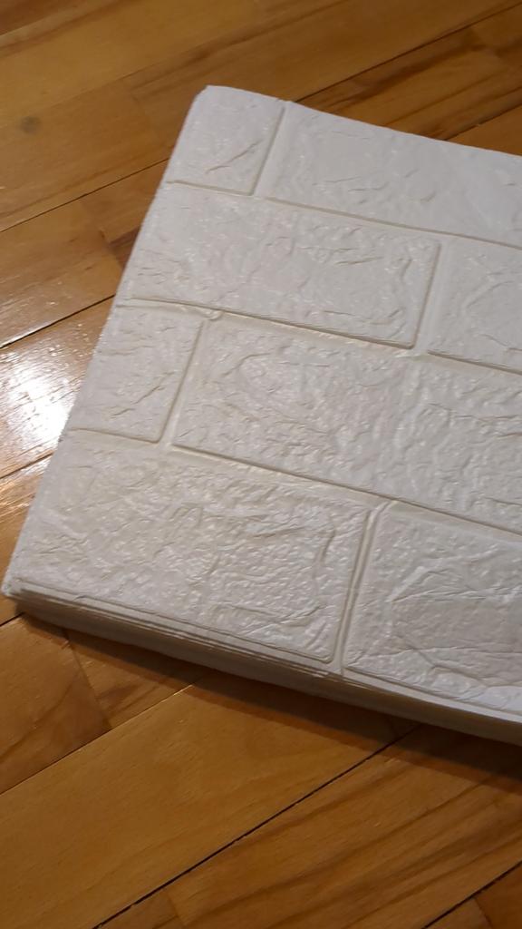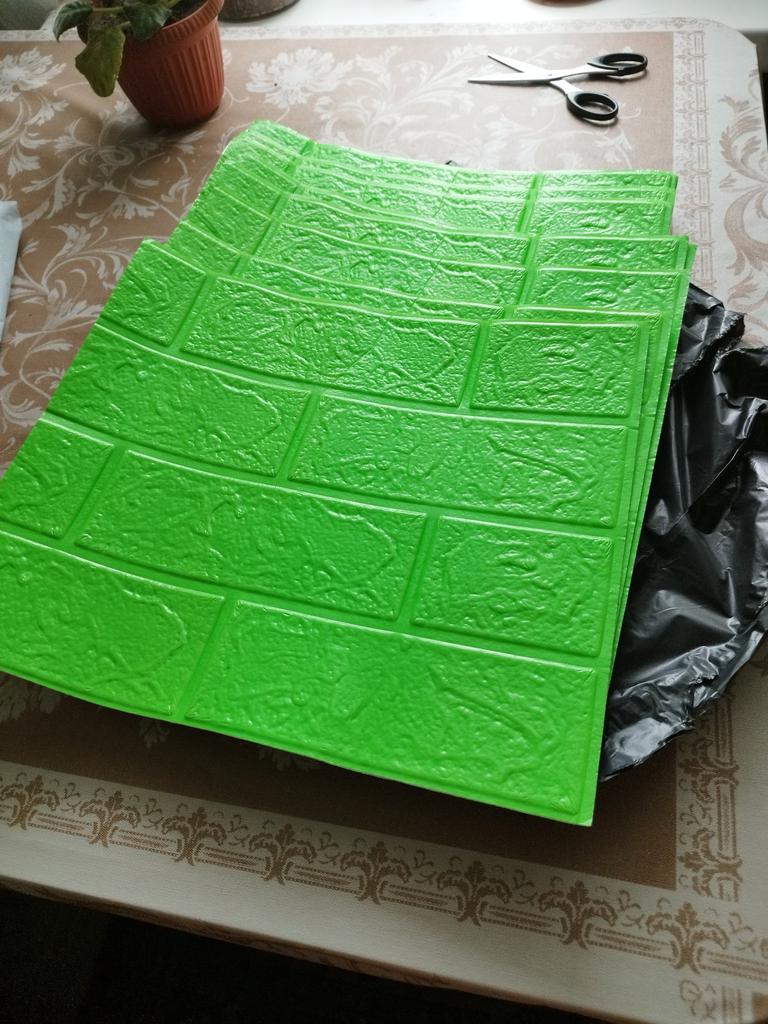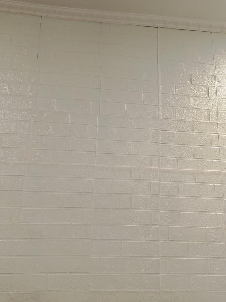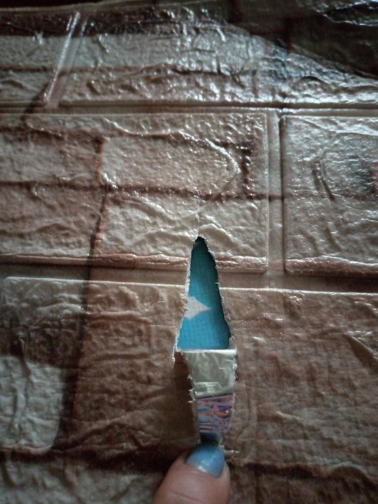 The stickers are very delicate with a brick effect. When removing the transparent protective film, you must be careful - the glue sticks to everything: clothes, hair, hands... - it is difficult to peel off, because the "bricks" themselves tear and deteriorate. I pasted it on the wallpaper - it holds up well, it won't work to re-glue it in the unevenness) Therefore, crookedly, that's how it will be.