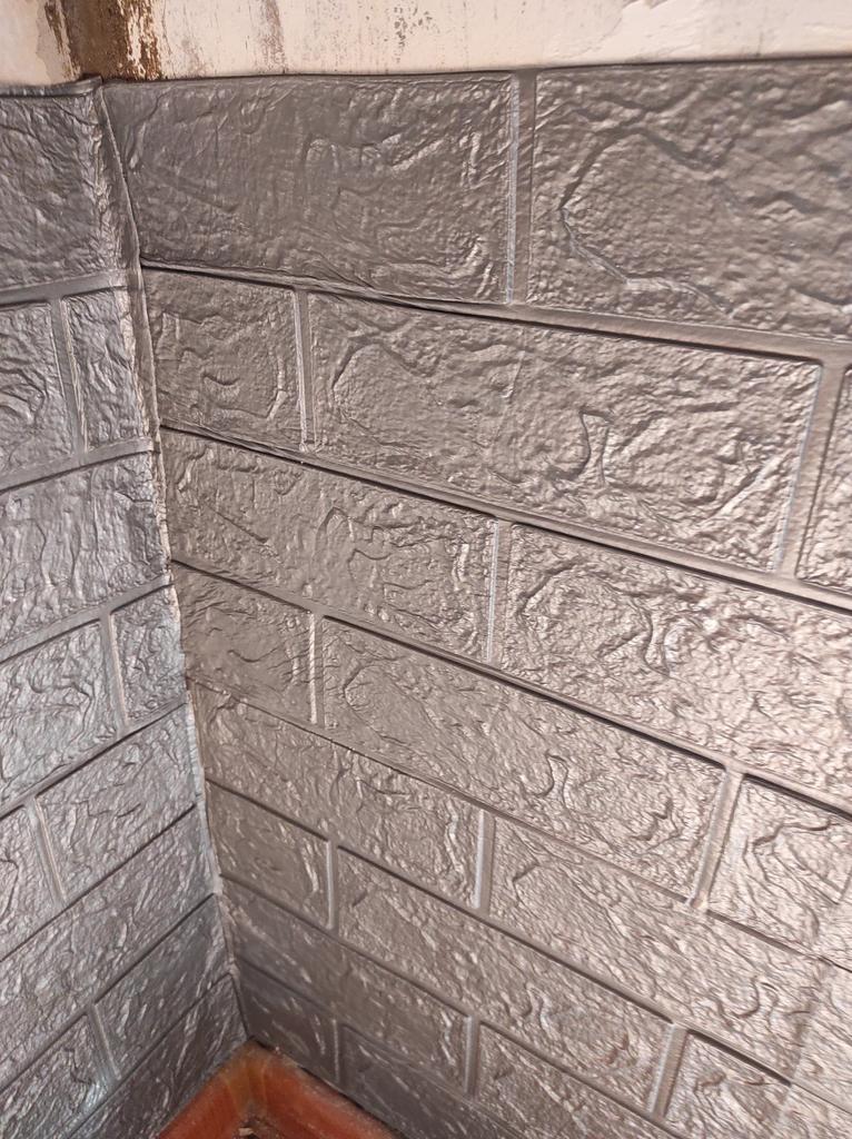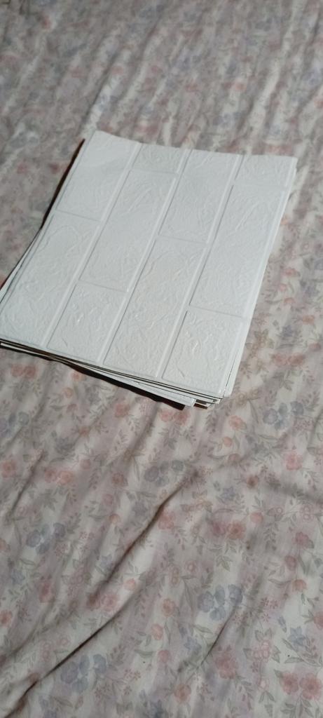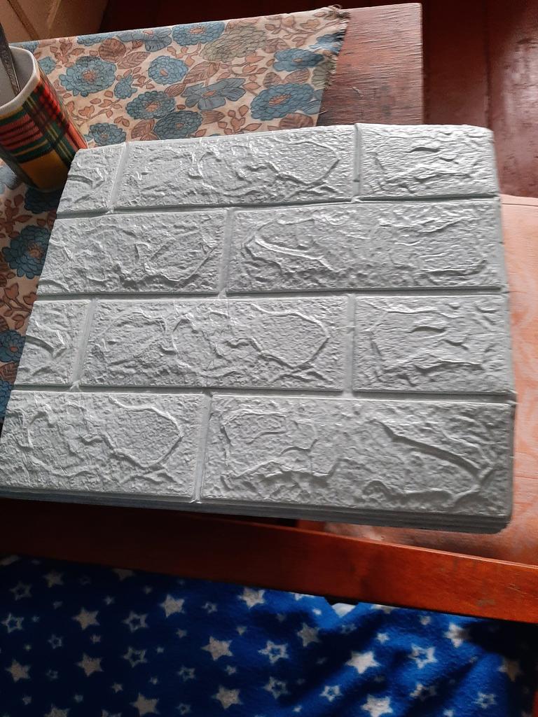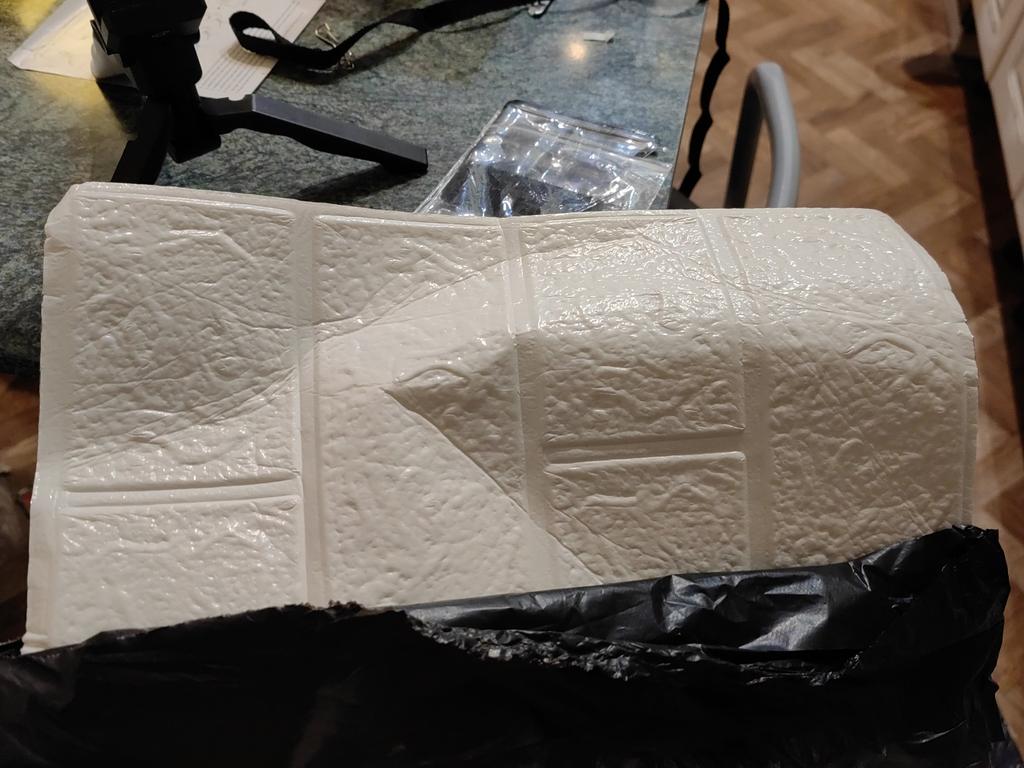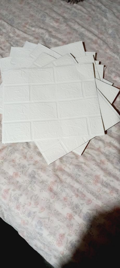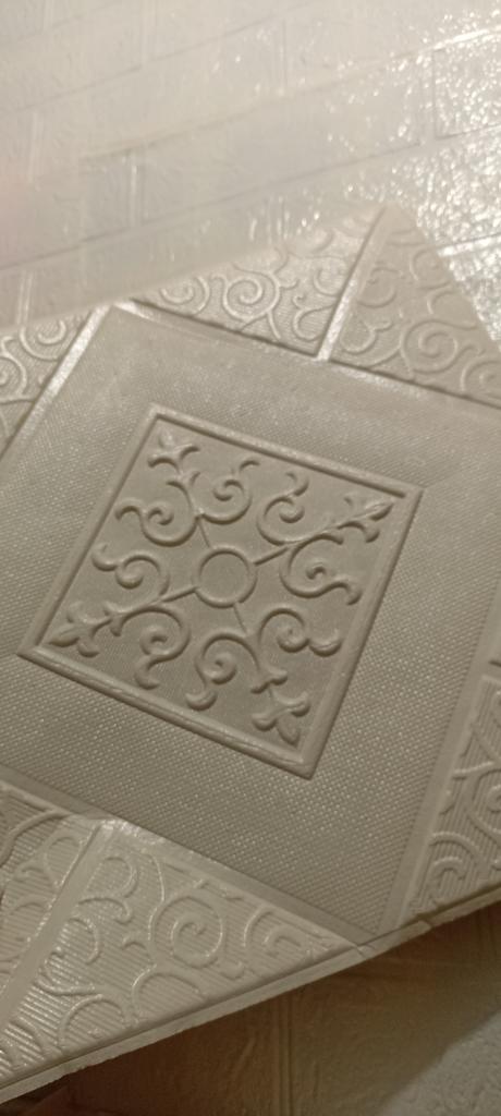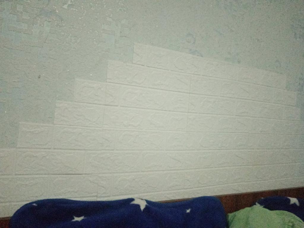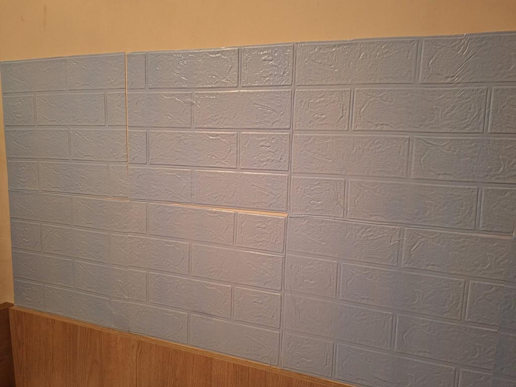 The stickers are very delicate with a brick effect. When removing the transparent protective film, you must be careful - the glue sticks to everything: clothes, hair, hands... - it is difficult to peel off, because the "bricks" themselves tear and deteriorate. I pasted it on the wallpaper - it holds up well, it won't work to re-glue it in the unevenness) Therefore, crookedly, that's how it will be.