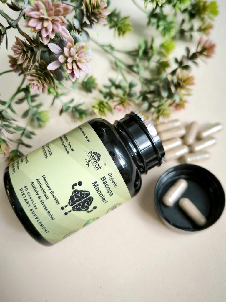 Ayurvedic dietary supplement Bacopa Monnieri Heroot India Contains 400mg of this plant extract. Natural tonic and antioxidant for the brain. Antistress. Promotes the restoration of the nervous system after fatigue. Heroot dietary supplements work, so you can order them with confidence.