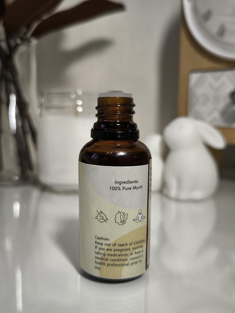 100% Pure Myrrh Essential Oil🌱 📌Caution: AVOID CONTACT WITH EYES Keep out of reach of children. If you are pregnant, nursing, taking medication or have a medical condition, consult a physician before use.