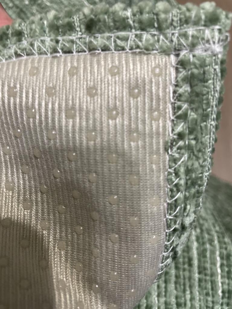 Thick material, like corduroy, rubber fluff on the back side so it doesn’t slip, the color is very nice