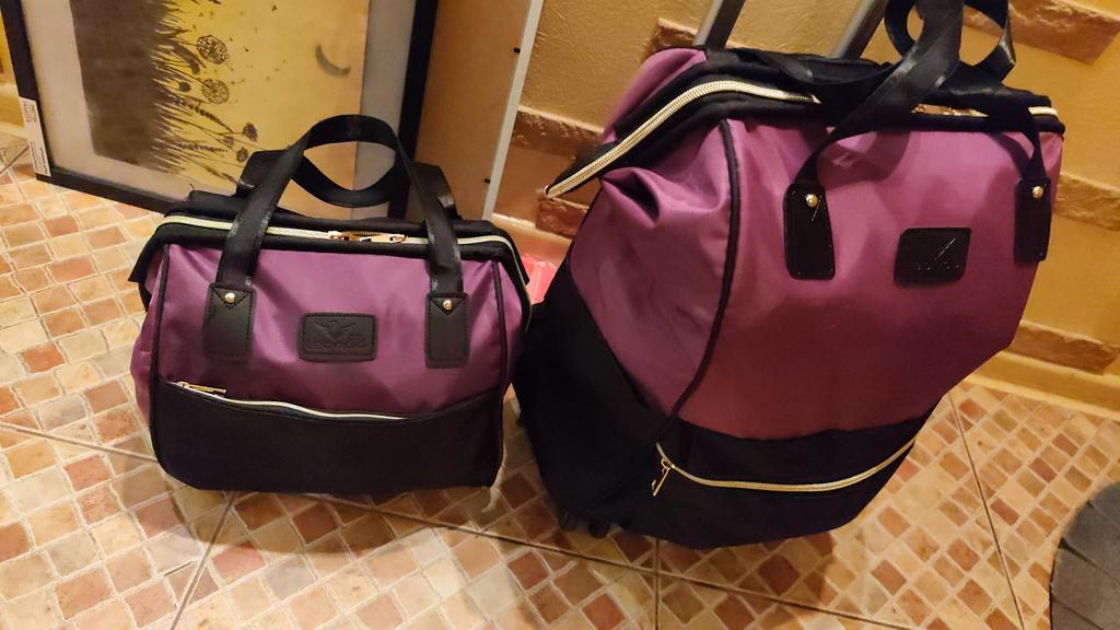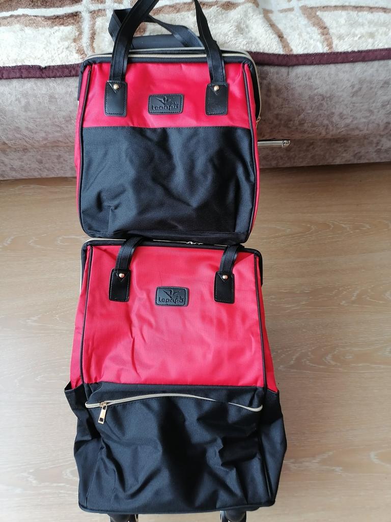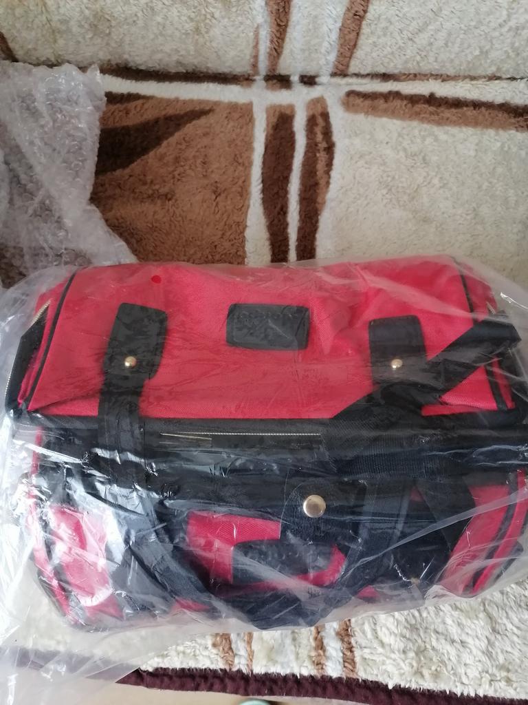 The bag is distinguished by the quality of its material. It has attractive colours. Dark black with bright red. Everything in it is beautiful and its size is very appropriate. It is neither large nor small. It is exactly like the picture. Its wheels are flexible and its zippers are wonderful... Thank you, you have earned our full trust... I liked it very much