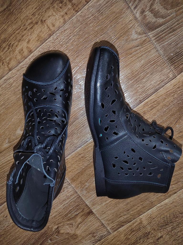 Very narrow top. The foot doesn't go through the "neck". If you have a high instep, or your foot is swollen, it's impossible to put on the ankle boots. Such ankle boots need to be made with a zipper. Very very sad. Beautiful, soft, lightweight. (((