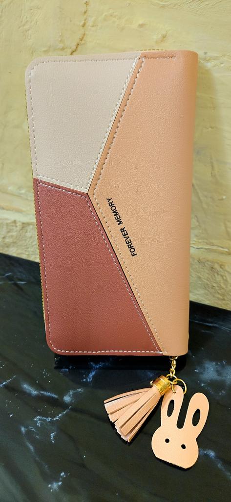 Geometric Women Wallet Patchwork PU Leather Long Zipper Wrist Purses Tassel Design Clutch Forever Young Wallet Female Card Holder