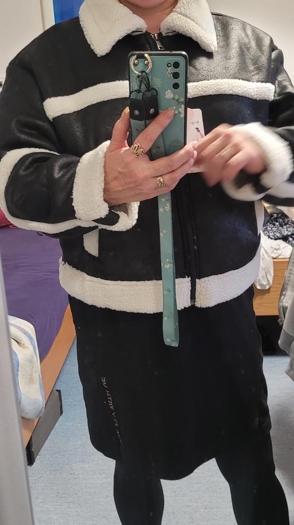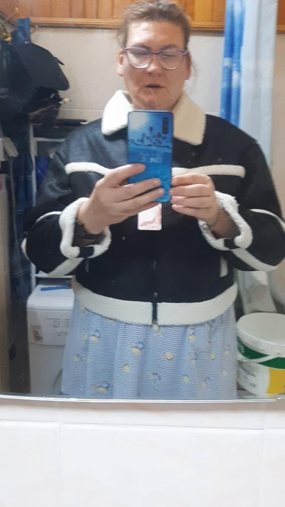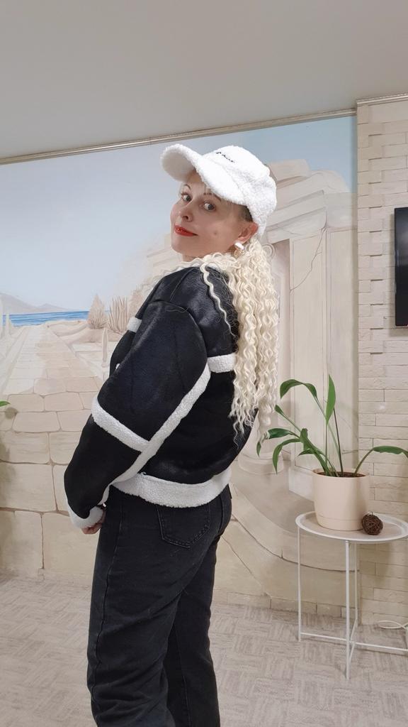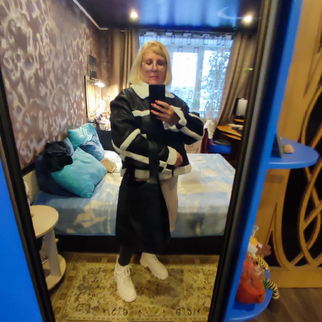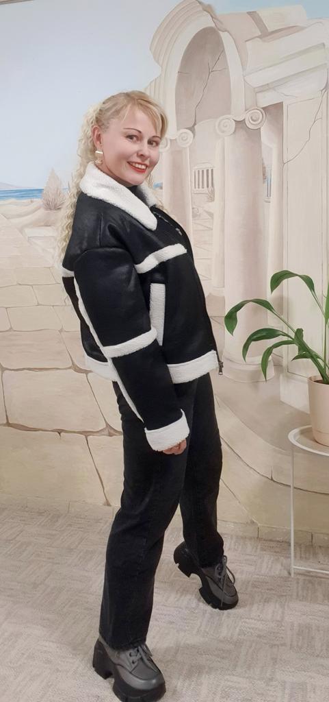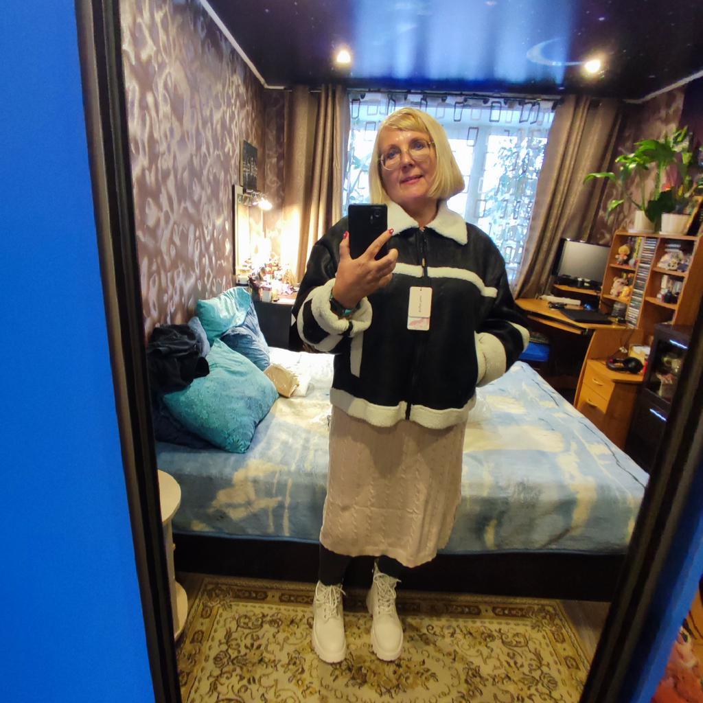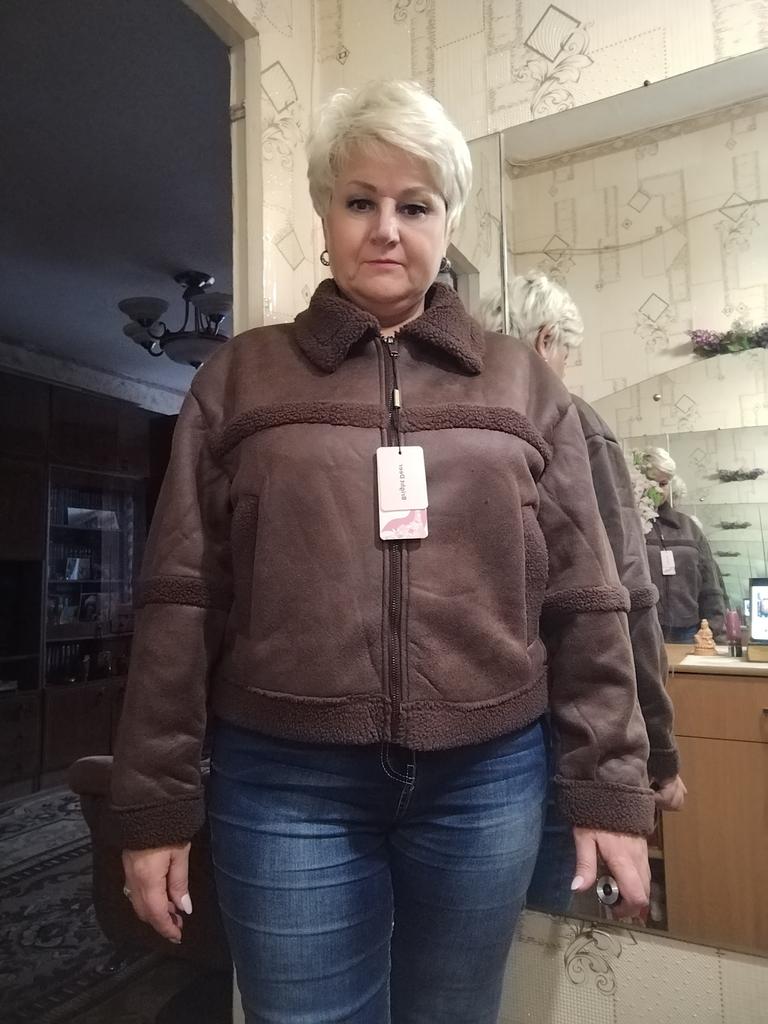 Very cool jacket, I’m already wearing it and my friend also ordered one for herself after seeing it on me! Lightweight and warm! Just go through the fur inside with a brush, otherwise small pieces of fur remain on the clothes, I wear them with a leather shirt😋🤗