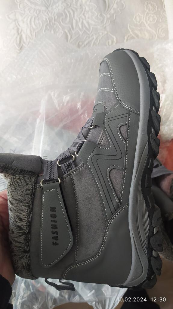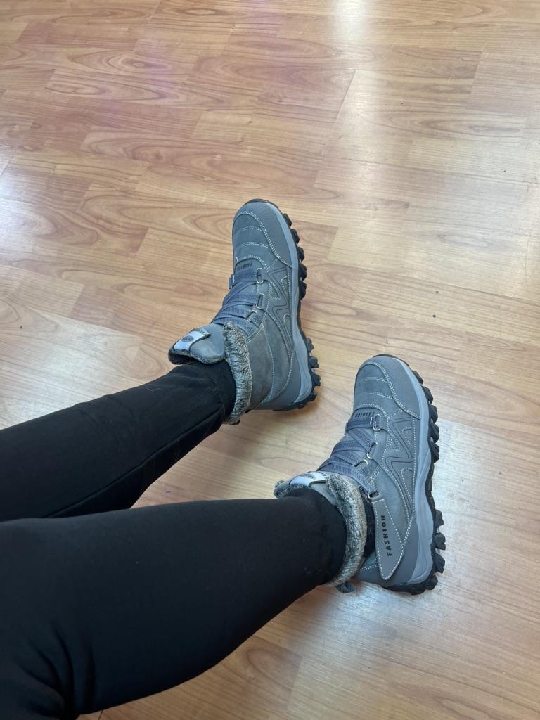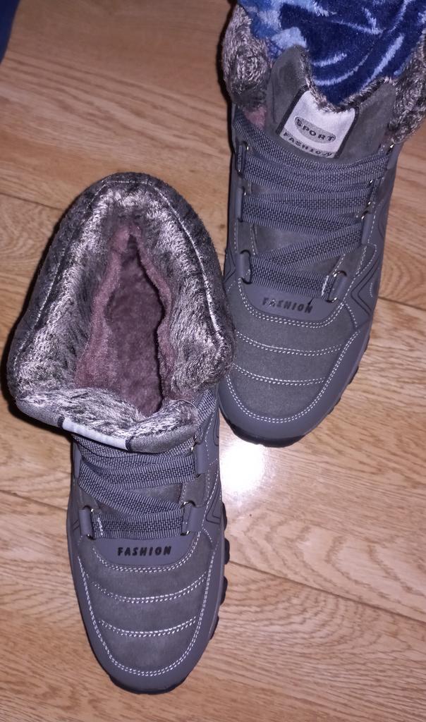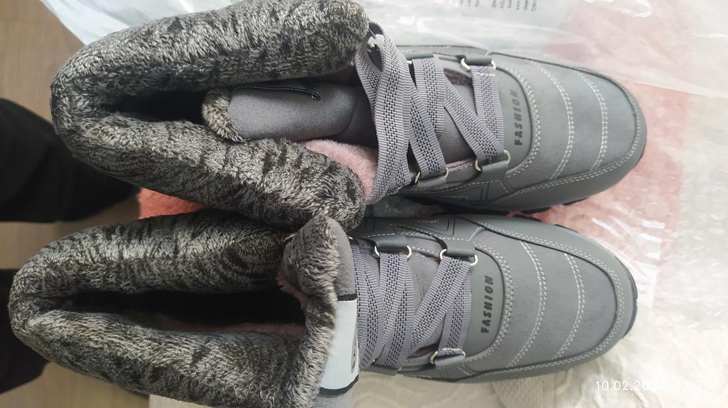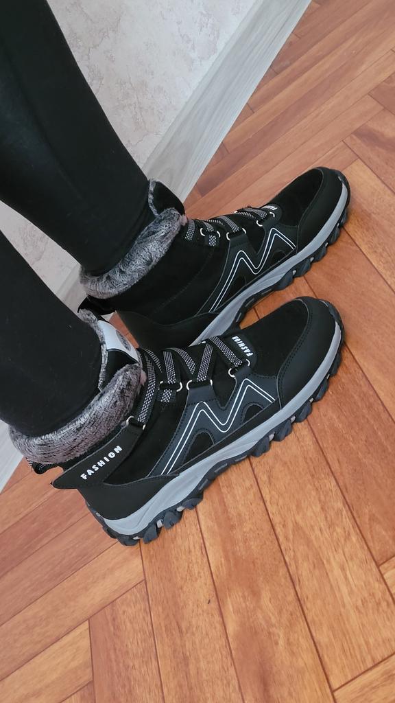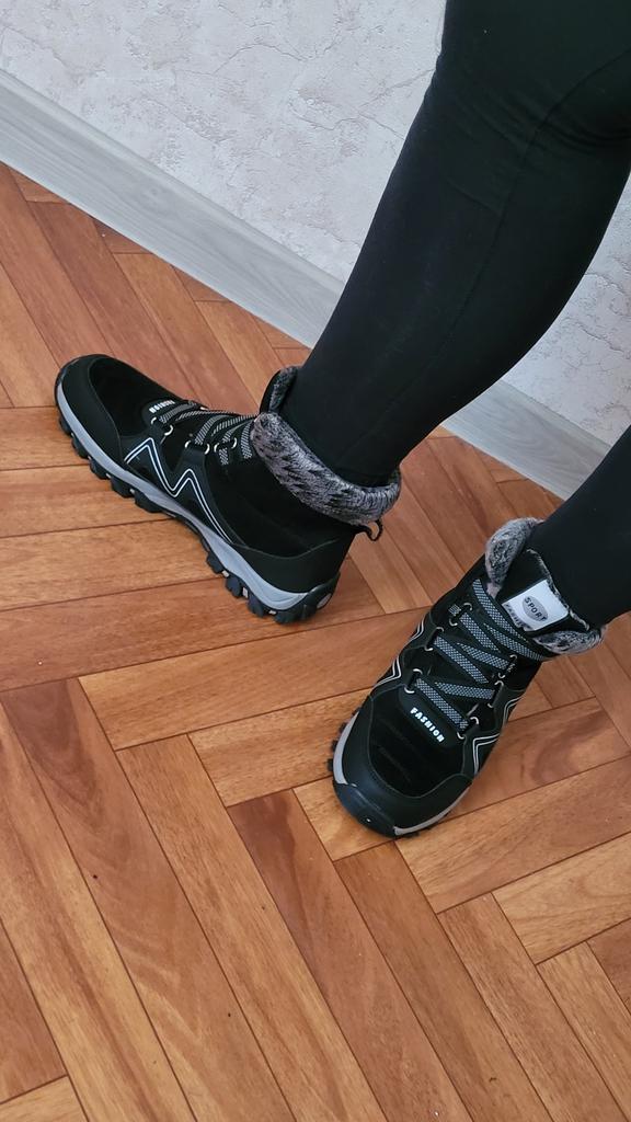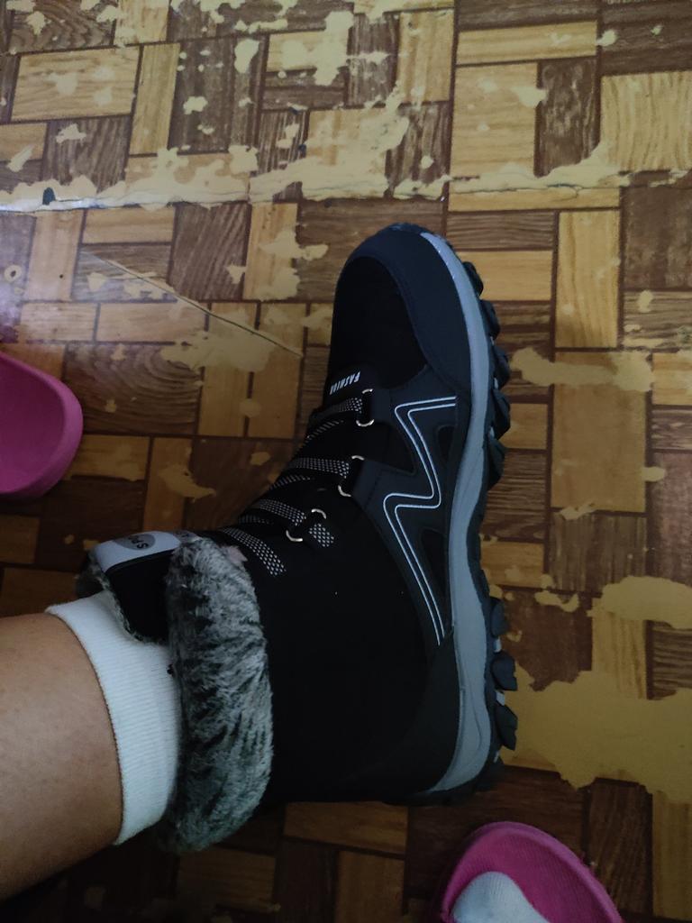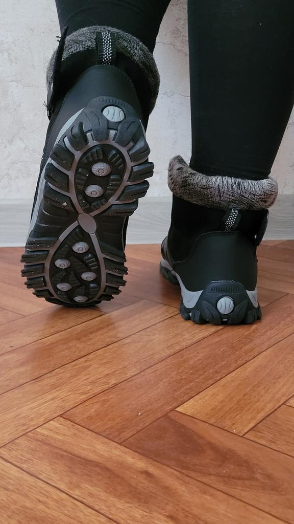 Winter boots Usually, shoes from the Internet rarely fit me. Constantly either small or large. And these just sat on the leg beautifully. It will be very convenient to wear them in cold weather, there is fur in the middle, and they are easy to wear with Velcro. But there is one minus, due to the fact that I have a thin leg, I need to tighten the tape to the maximum, and when I tighten it too much, the tape no longer sticks because it becomes very long. But it can be fixed, trimmed and sewn carefully) In general, I am very satisfied with the product, thank you 🤩