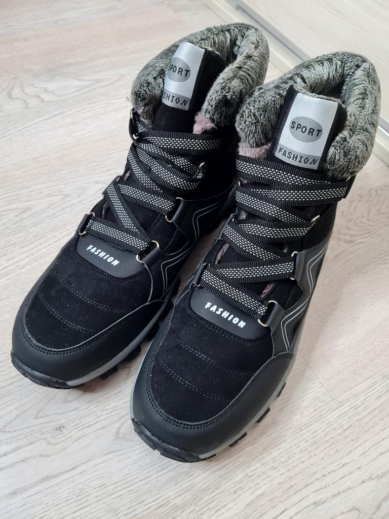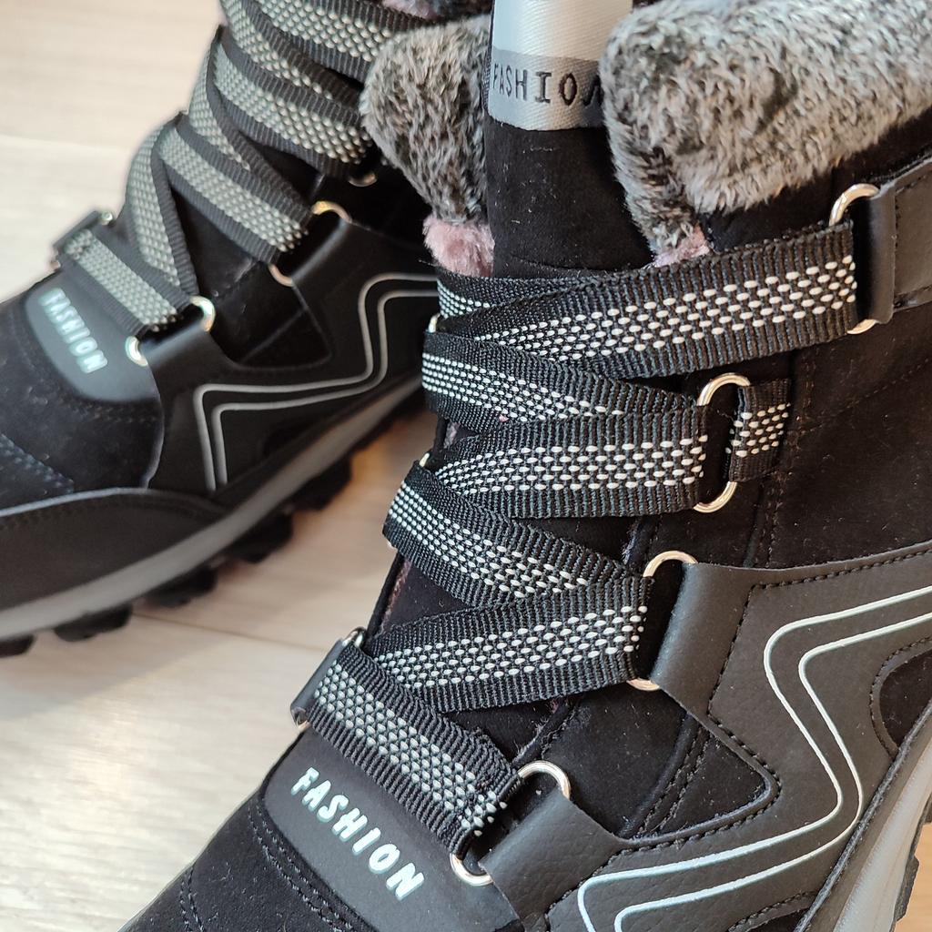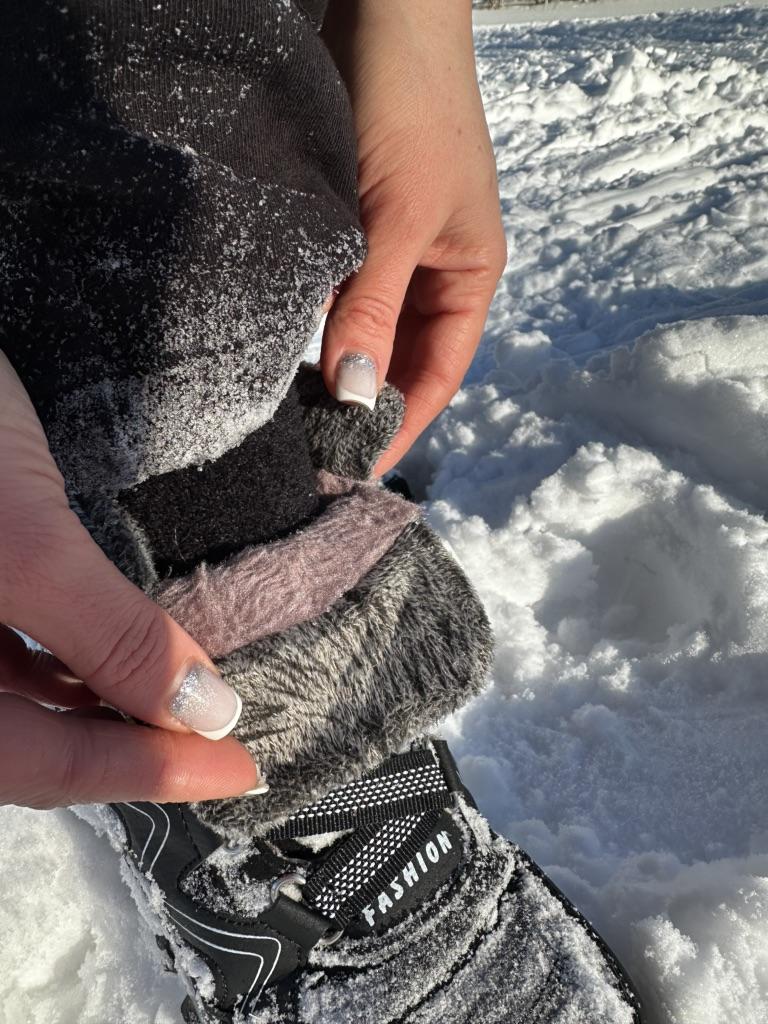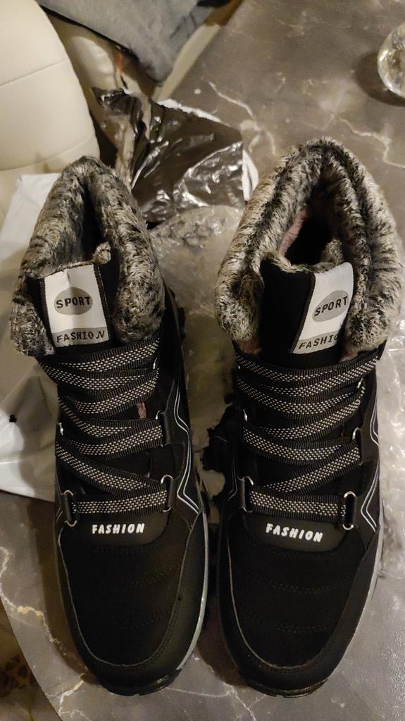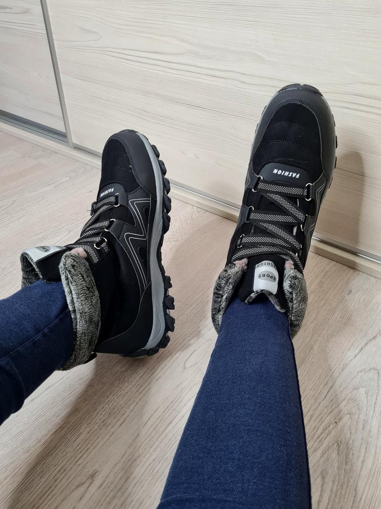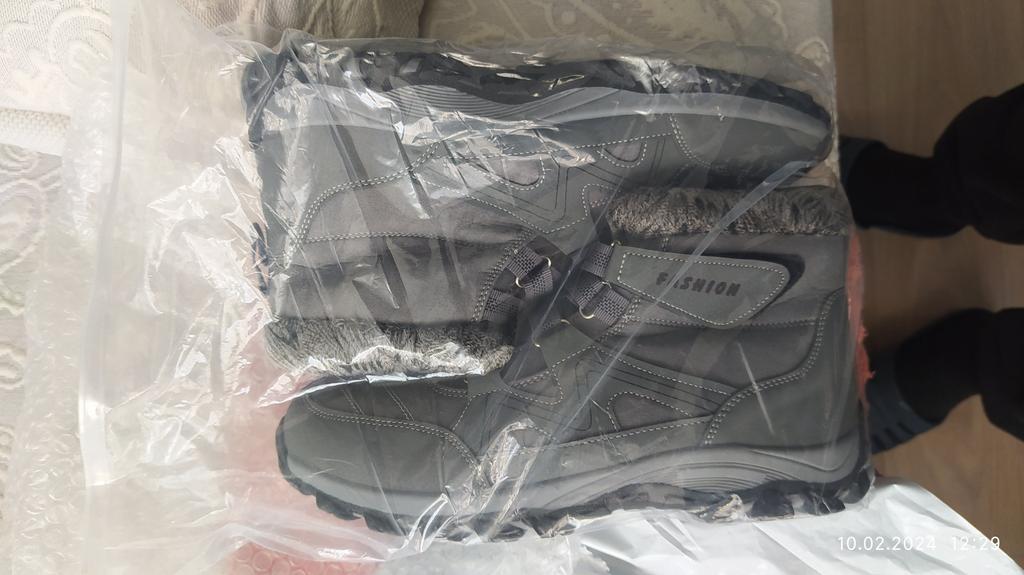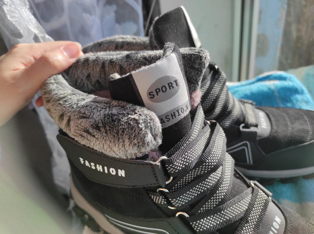 Winter boots Usually, shoes from the Internet rarely fit me. Constantly either small or large. And these just sat on the leg beautifully. It will be very convenient to wear them in cold weather, there is fur in the middle, and they are easy to wear with Velcro. But there is one minus, due to the fact that I have a thin leg, I need to tighten the tape to the maximum, and when I tighten it too much, the tape no longer sticks because it becomes very long. But it can be fixed, trimmed and sewn carefully) In general, I am very satisfied with the product, thank you 🤩