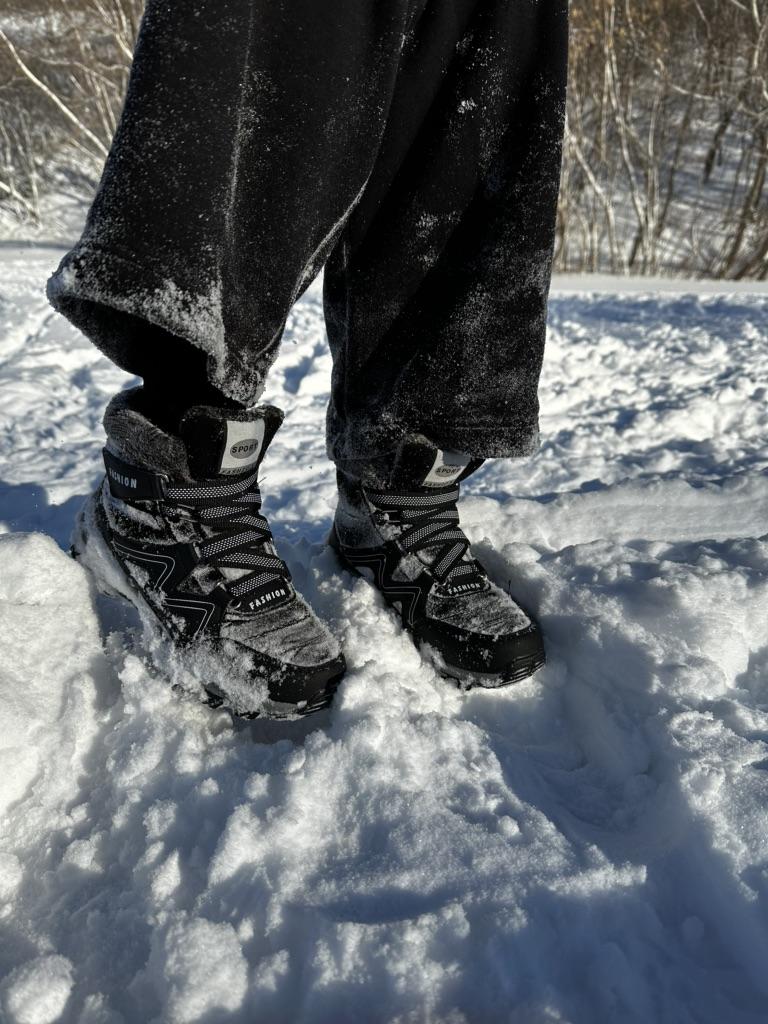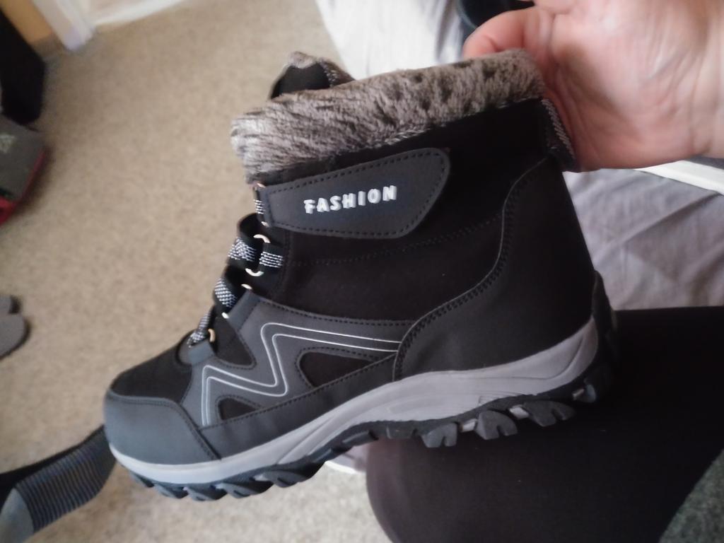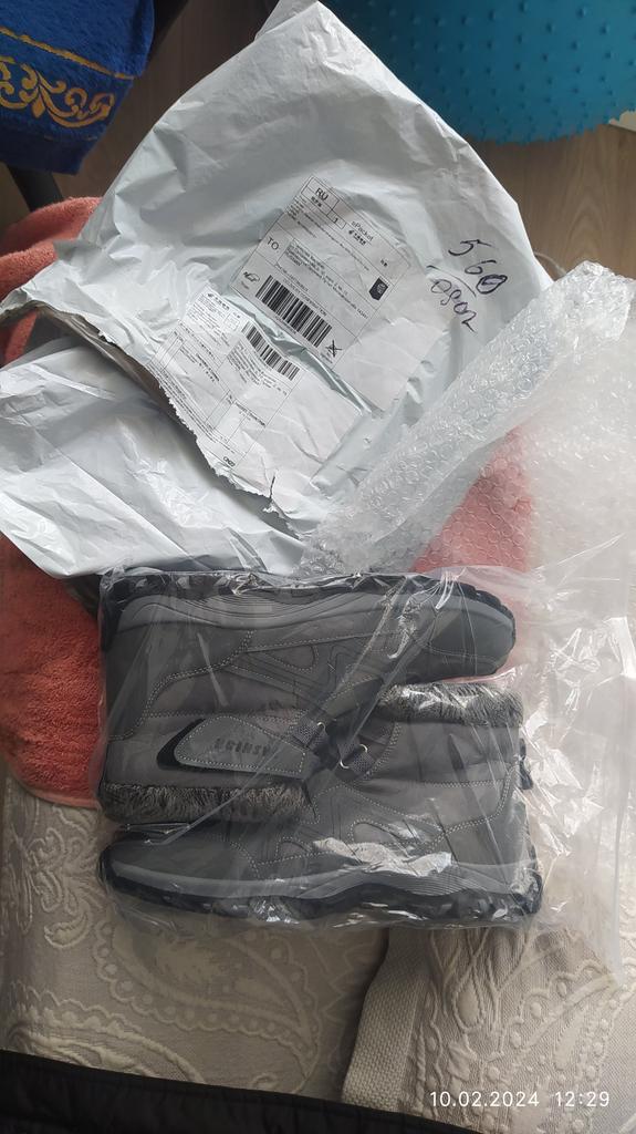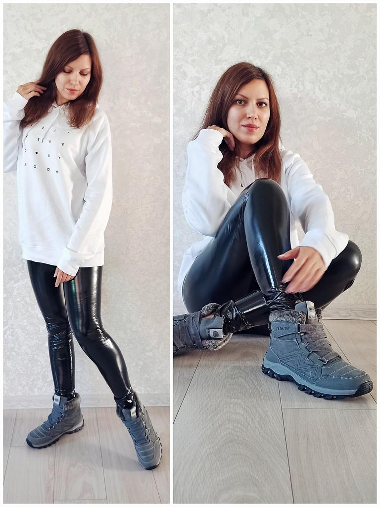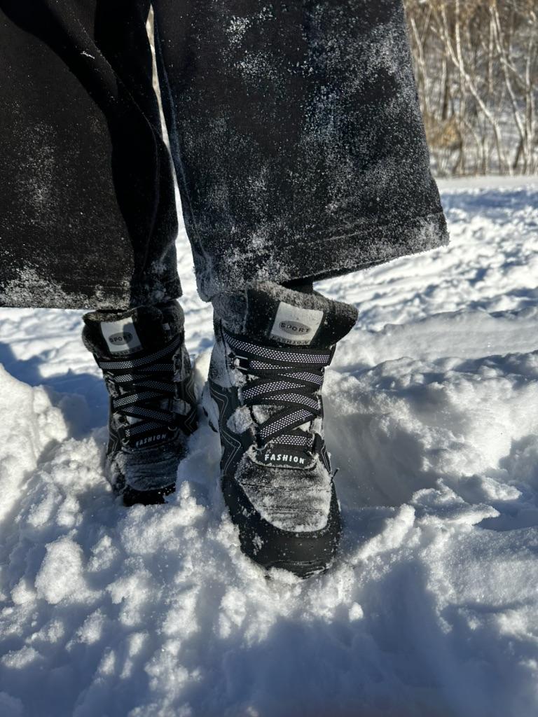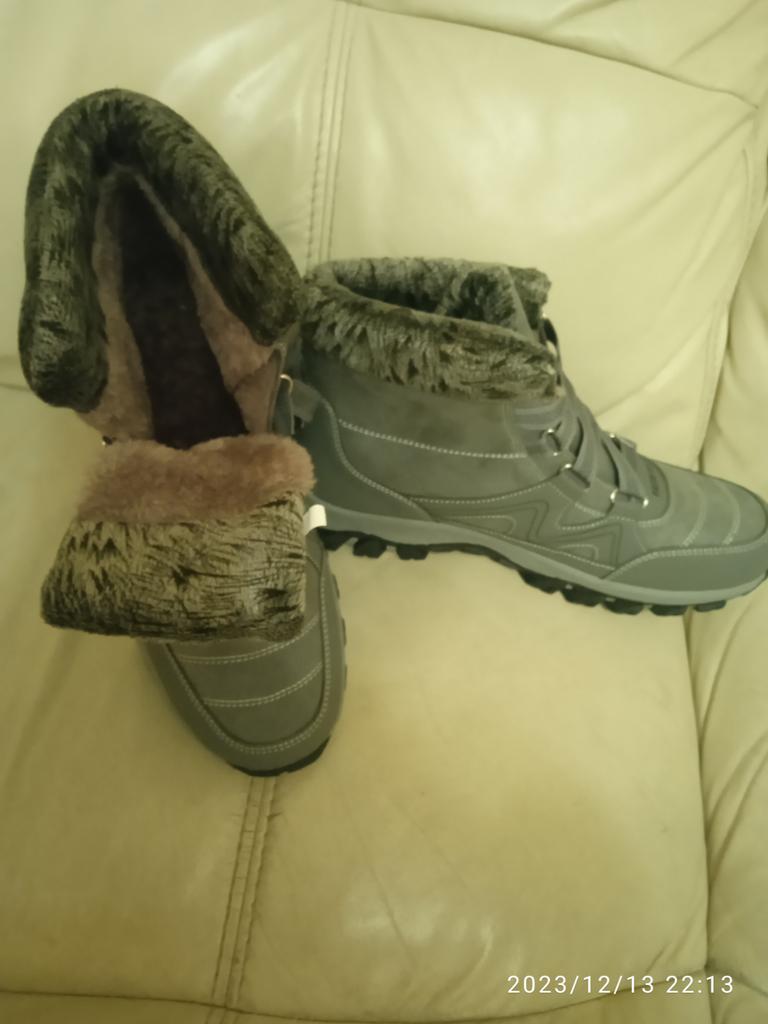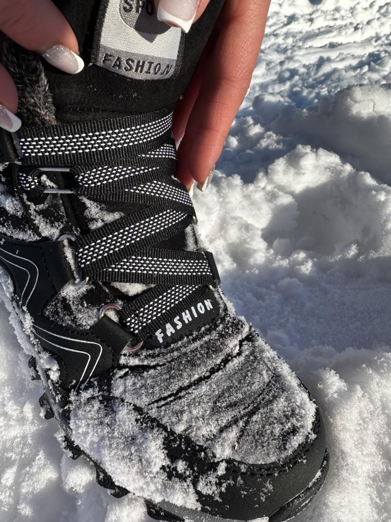 Winter boots Usually, shoes from the Internet rarely fit me. Constantly either small or large. And these just sat on the leg beautifully. It will be very convenient to wear them in cold weather, there is fur in the middle, and they are easy to wear with Velcro. But there is one minus, due to the fact that I have a thin leg, I need to tighten the tape to the maximum, and when I tighten it too much, the tape no longer sticks because it becomes very long. But it can be fixed, trimmed and sewn carefully) In general, I am very satisfied with the product, thank you 🤩
