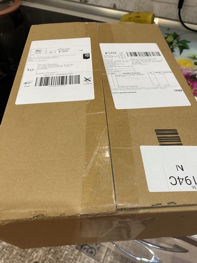 The sneakers arrived quickly, the packaging was undamaged. No questions at all about the delivery, but they are not original. The barcode shows an advertisement for the sale of these used sneakers.