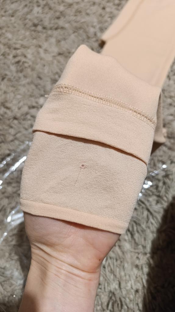 The product in the photo looks thicker (warmer) than it actually is. I received the product with a hole(( I bought it as a gift. The end of the trouser leg is unclear. Something has been sewn on, like an extension, where the hole was.