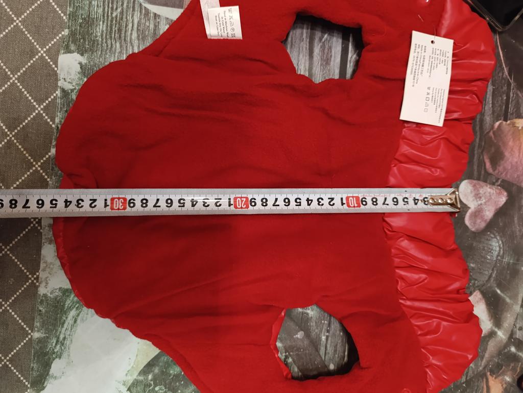 The vest is not bad. It fits the length and width of a 2.5 kg Chihuahua. Only the holes for the paws are huge, I had to sew them up a little.