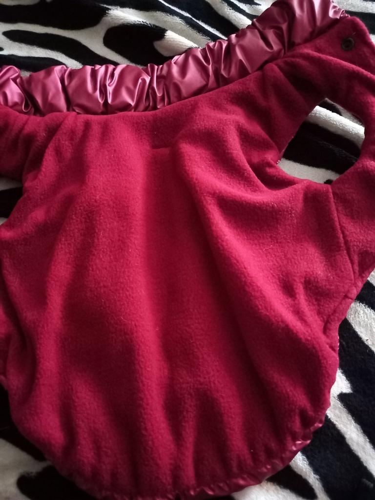 Very neatly sewn, fleece inside, waterproof top, fits the dog perfectly and he is comfortable in it. Only smelly, but washing helps 😉😉😉😉