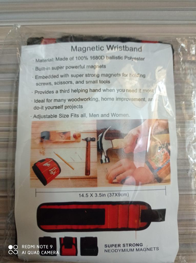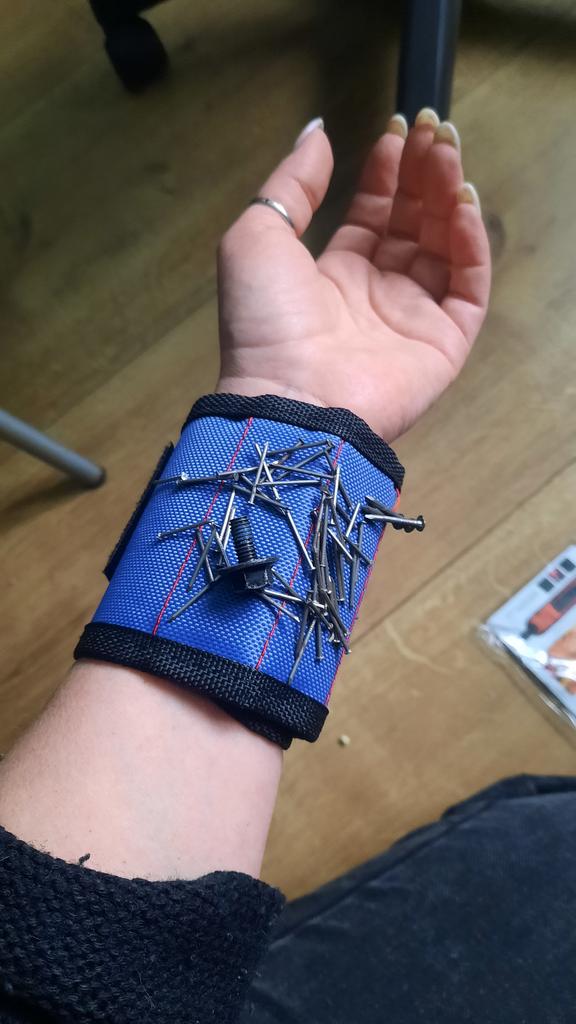 Good bracelet, holds screws and bits perfectly.