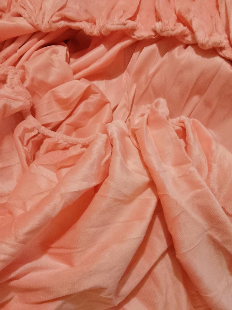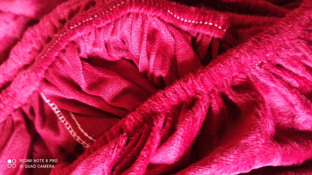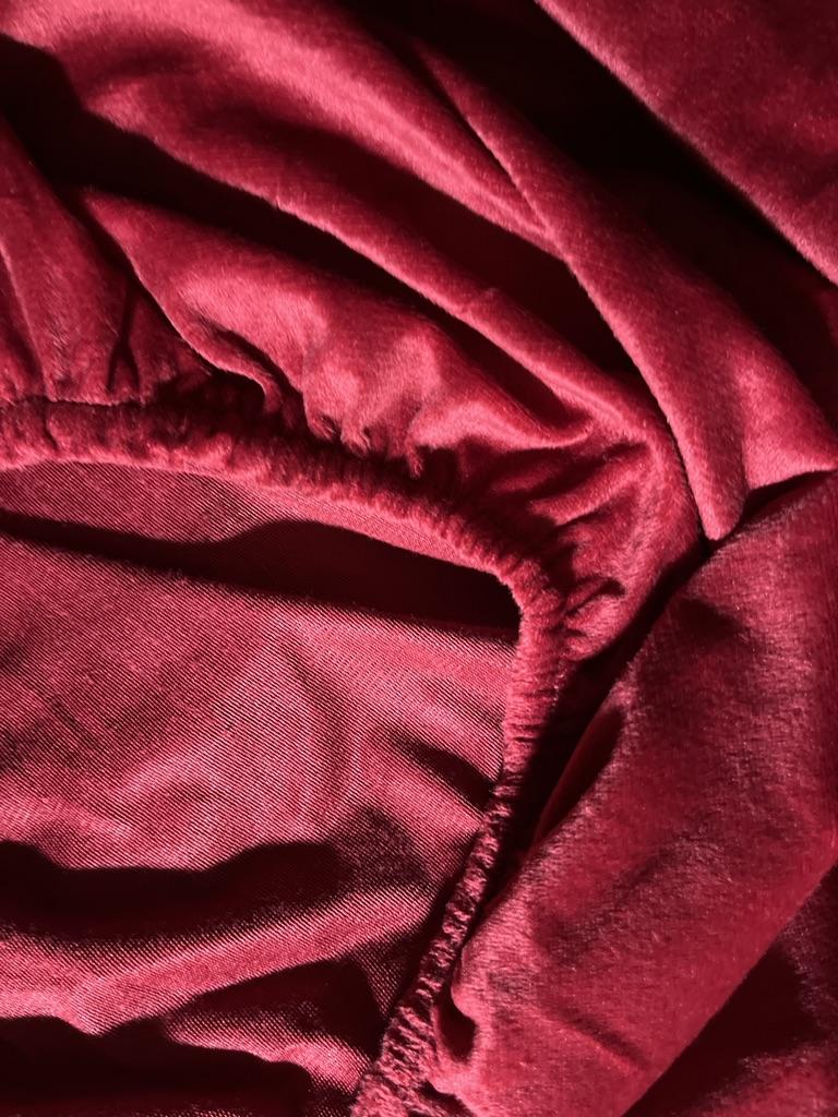 The sheet is bright, cherry-colored, very pleasant to the touch --- velvet. Well sewn.