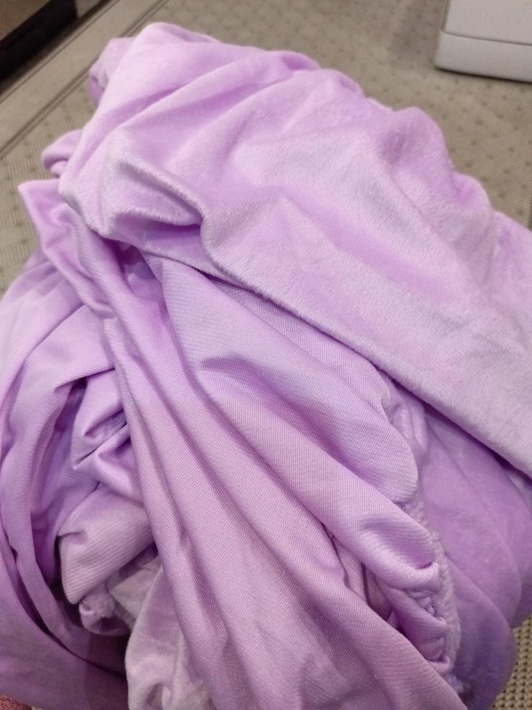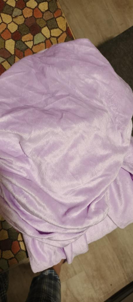 The sheet is plush, pleasant to the touch. It looks harmonious with the lilac bed.
