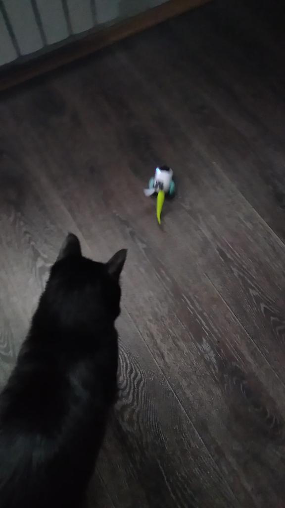 The mouse is interesting, but it arrived without a remote control, and when you press the button, it spins in place, and the cat doesn't like that. In general, it's incomplete.