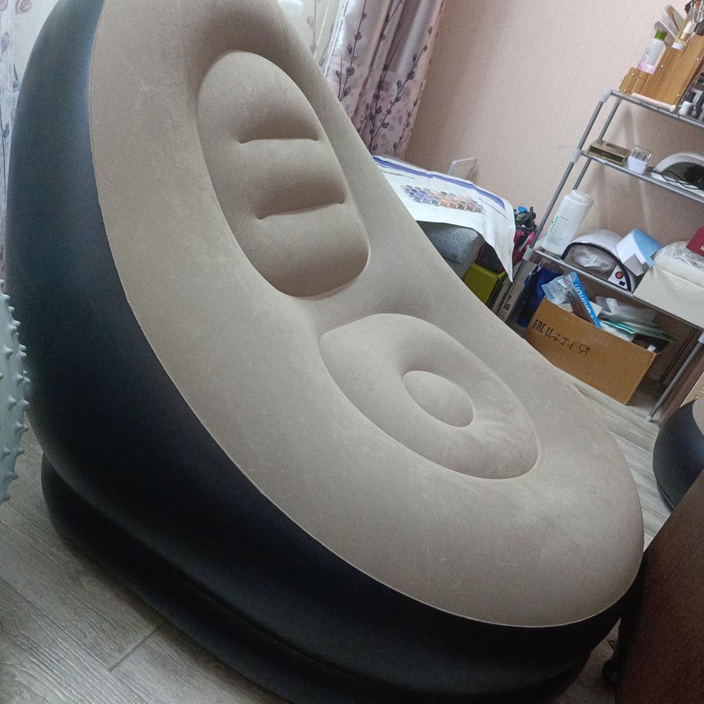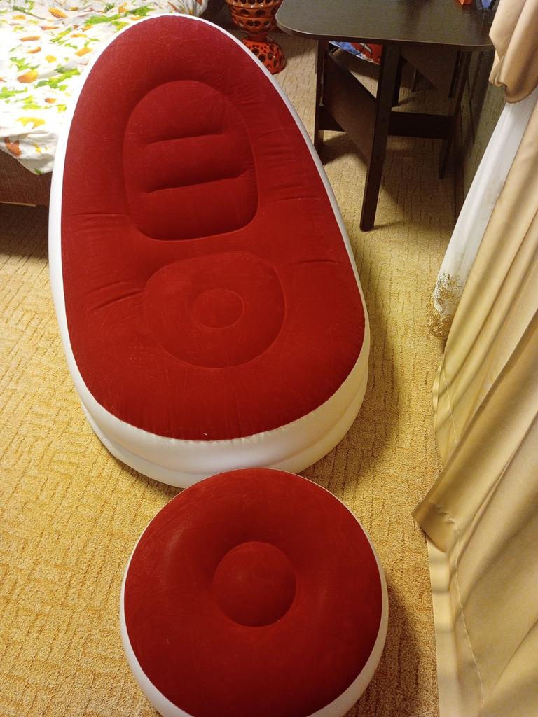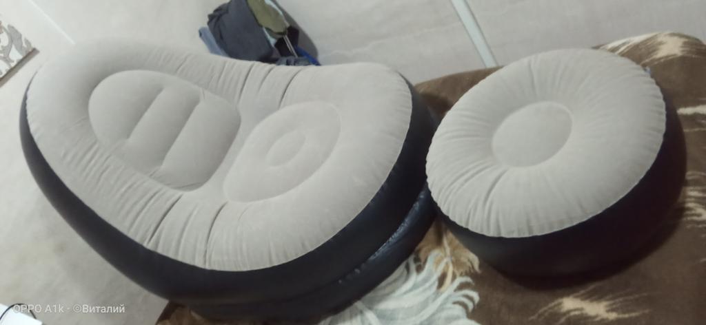 The pump is of course not great, the pouf inflated quickly, but the armchair is a disaster. The nozzle on the pump is short, when you hold it, the hose kinks there, the hose comes off, you can't inflate it yourself. In the armchair, there are 2 valves: one ordinary but wide, and one narrow with a "valve". I am leaving a review. Both the pouf and the armchair deflate. We inflated and inflated, but they deflated.