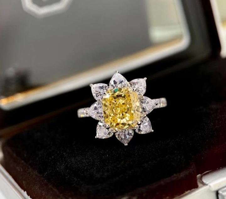 Lemon Yellow Color Moissanite 2.0CT Rings Fashion Sunflower Wedding Women Sterling Silver Ring Eternal Jewelry 18K Gold Band