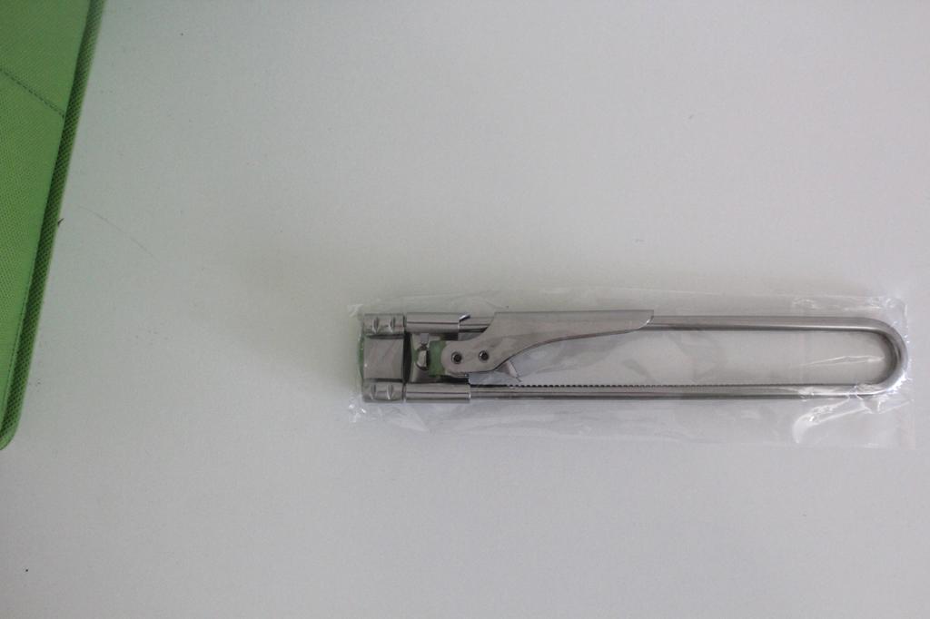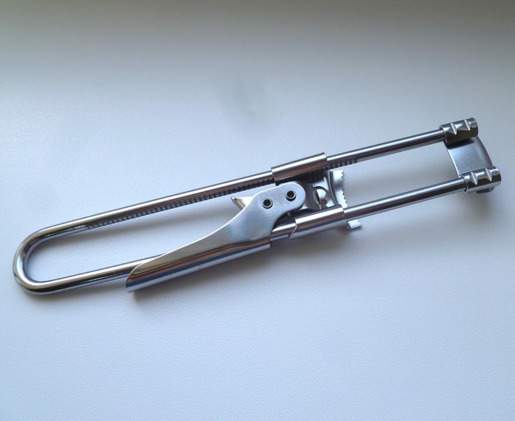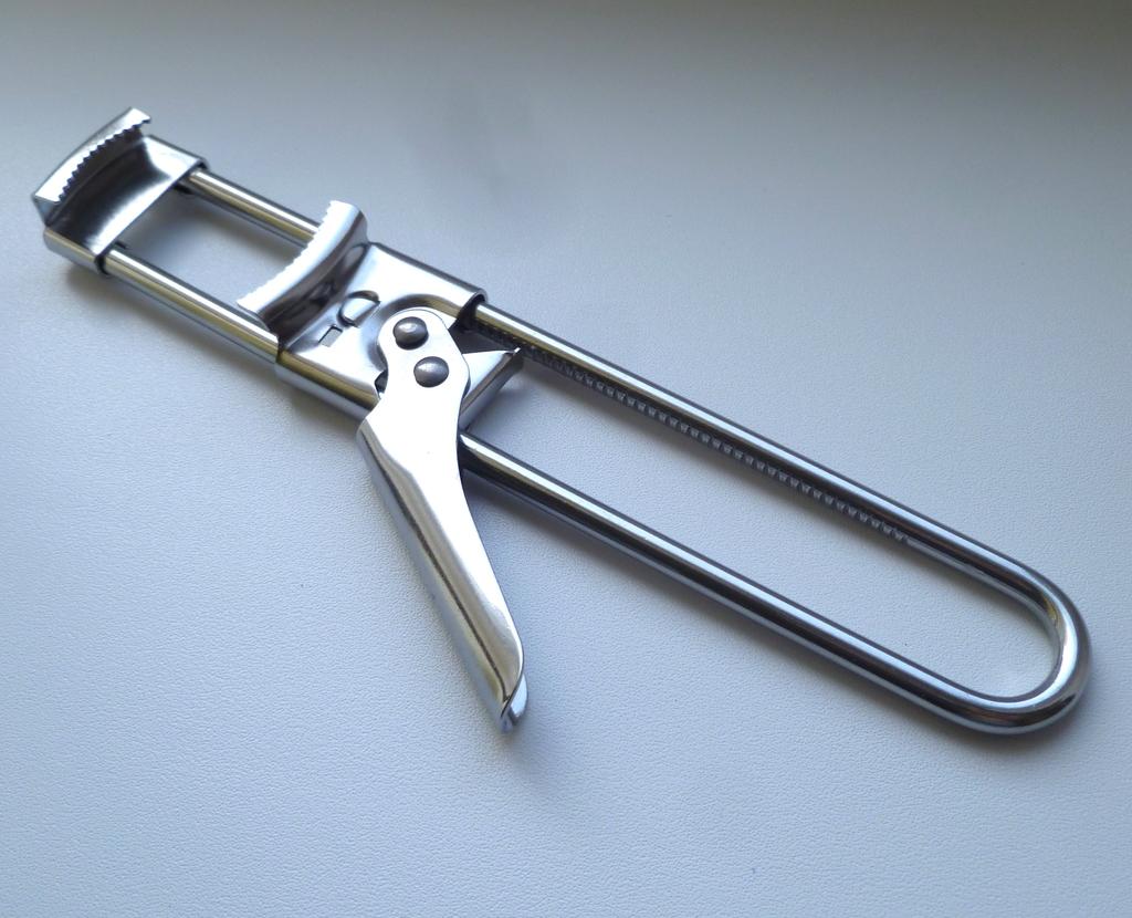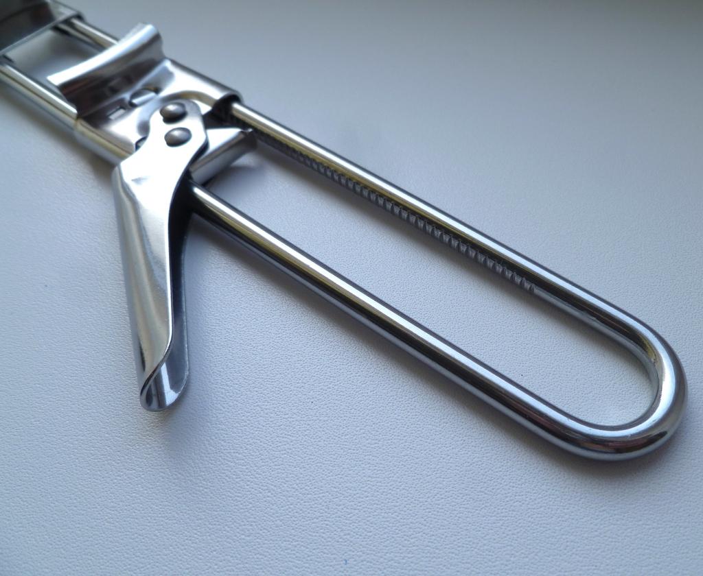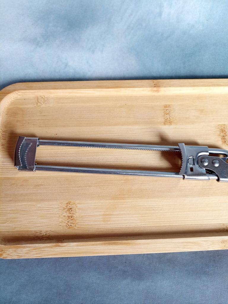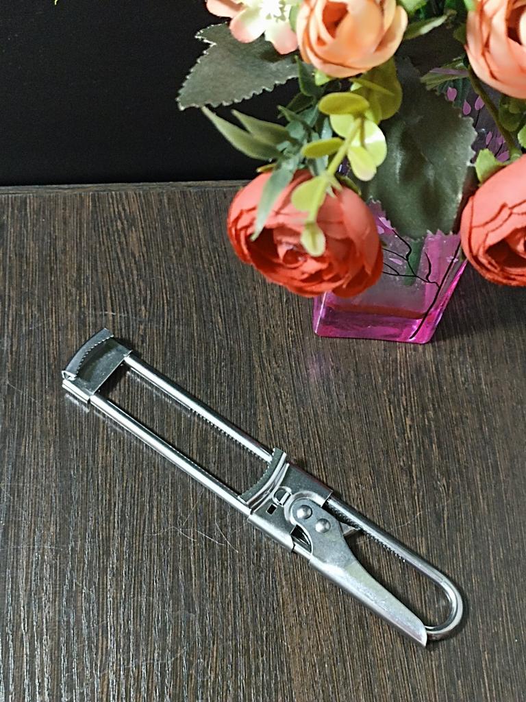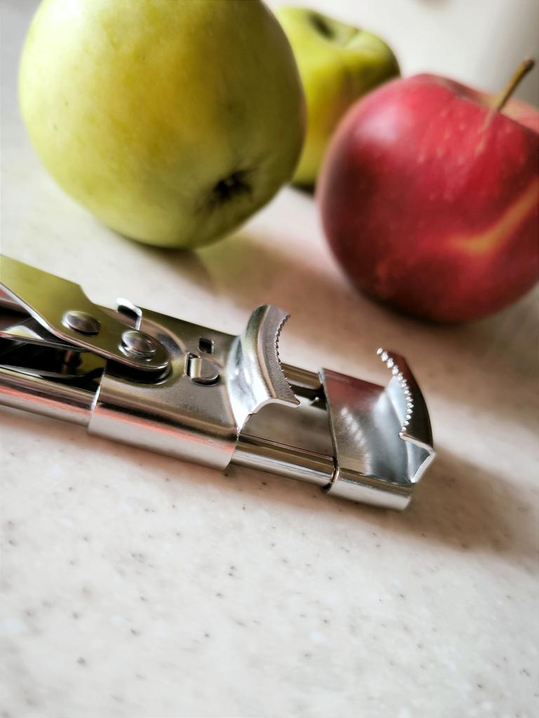 Can opener Adjustable design to fit most bottle sizes. Made of stainless steel. Size: 19cm x 3.3cm Must open cans with canned goods, bottles with drinks and other containers. You just need to clamp the lid with your teeth and press the handle, the lid rises and it is easy to open with your hands. But there is a minus: the metal structure presses the lids so that it makes dents and peels off the paint.