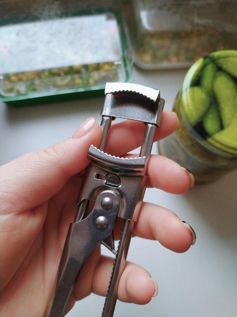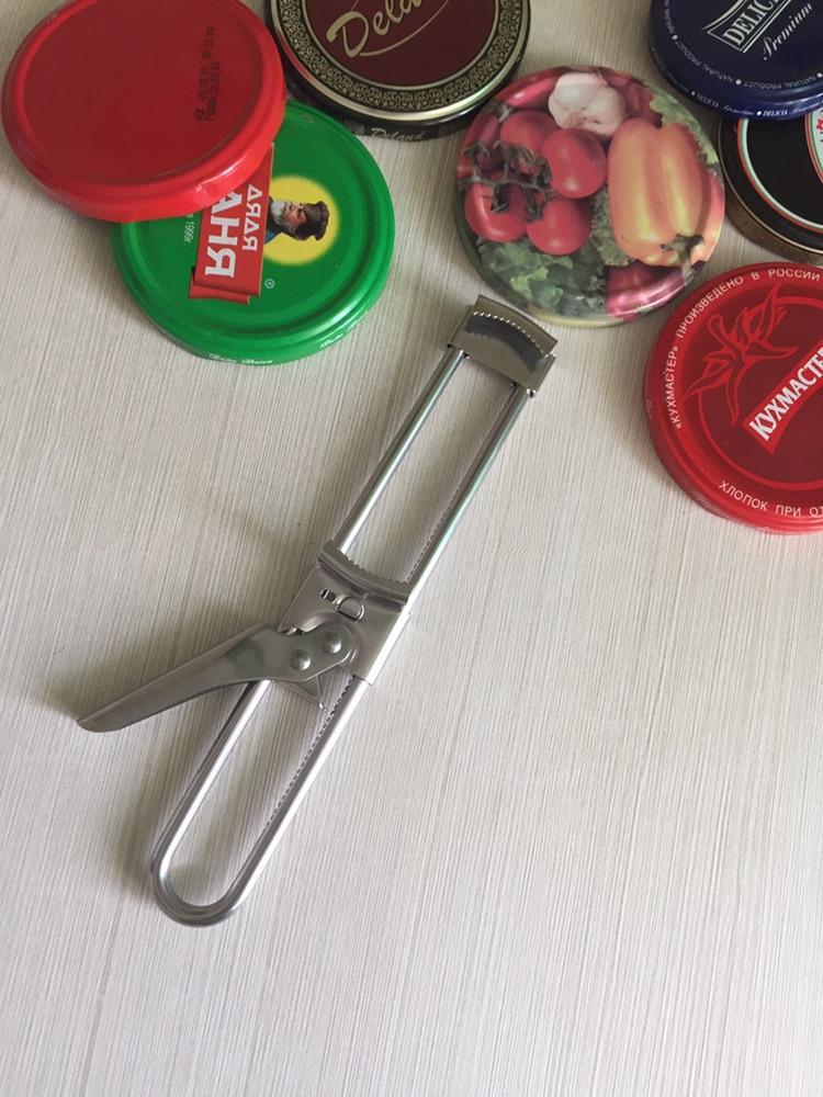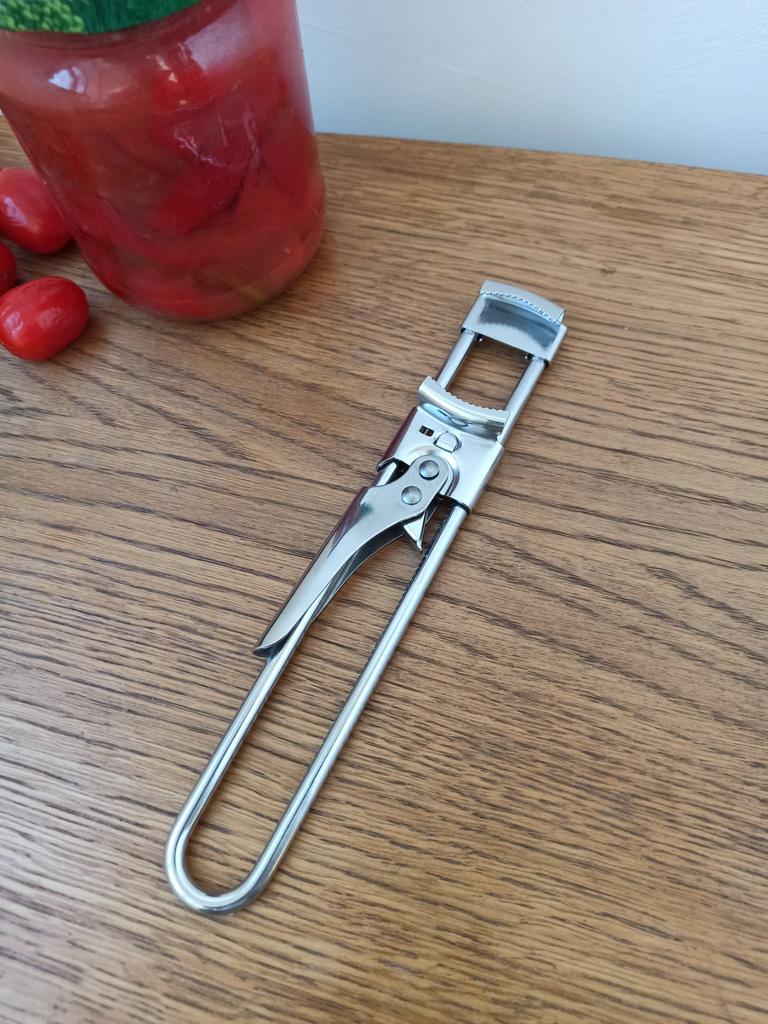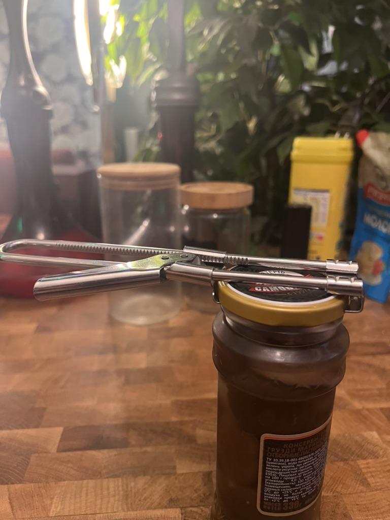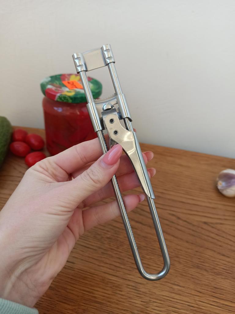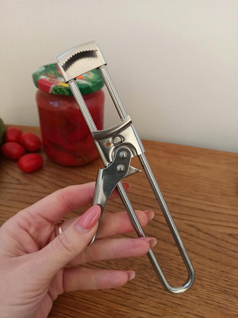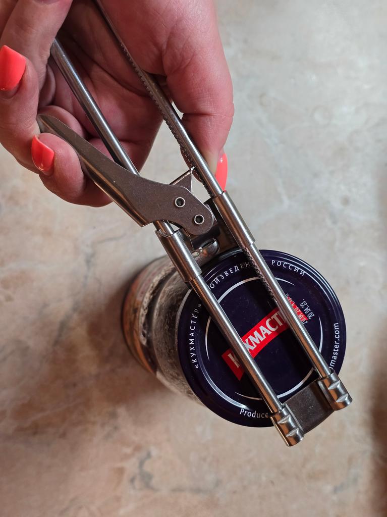Can opener with twist lids 👌 It is made entirely of stainless steel, all parts are either welded or riveted, so I have no doubt about its durability. Suitable for lids of any diameter - from bottle caps to the largest ones you can find in the kitchen. To open a jar, you need to insert the front part of the opener tightly under the lid, even if it is not possible to place the opener parallel to the lid in this position, press on it. Then we adjust the second part of the opener and move the side handle so that this part jams, then turn it clockwise. And it’s much easier than opening it with your hands - if you do everything correctly, but you need to prepare, I didn’t succeed the first time. #clothing