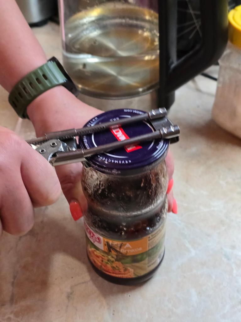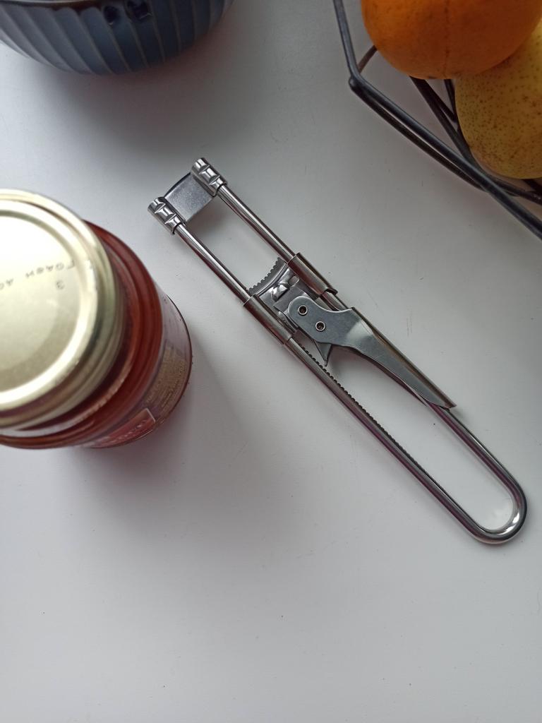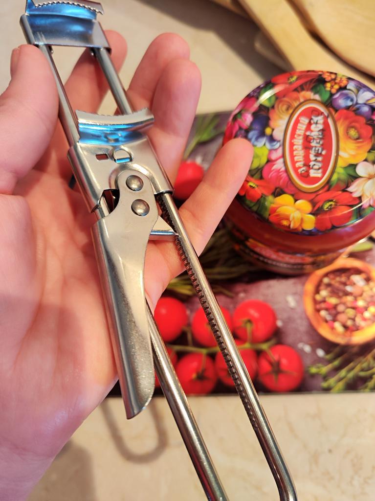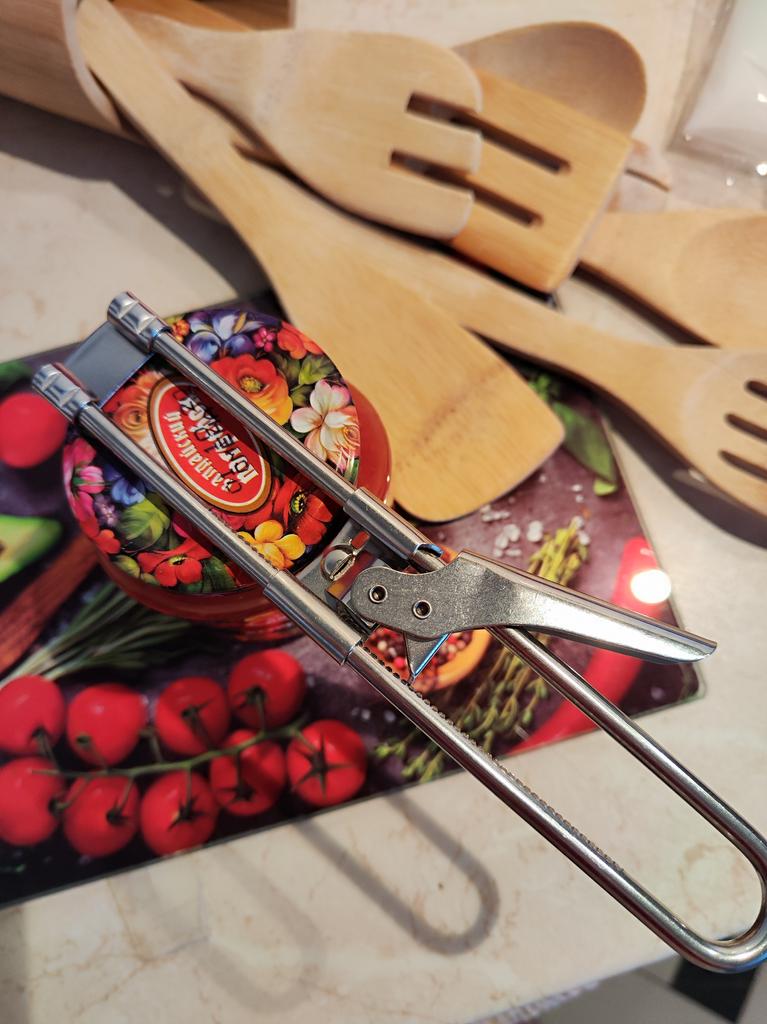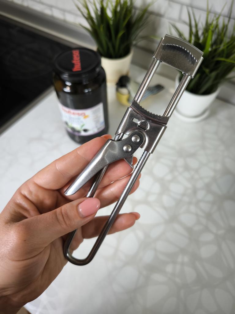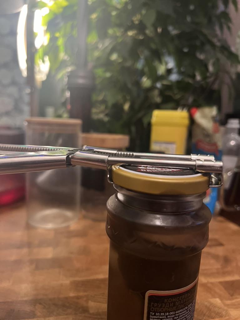 Can opener with twist lids 👌 It is made entirely of stainless steel, all parts are either welded or riveted, so I have no doubt about its durability. Suitable for lids of any diameter - from bottle caps to the largest ones you can find in the kitchen. To open a jar, you need to insert the front part of the opener tightly under the lid, even if it is not possible to place the opener parallel to the lid in this position, press on it. Then we adjust the second part of the opener and move the side handle so that this part jams, then turn it clockwise. And it’s much easier than opening it with your hands - if you do everything correctly, but you need to prepare, I didn’t succeed the first time. #clothing
