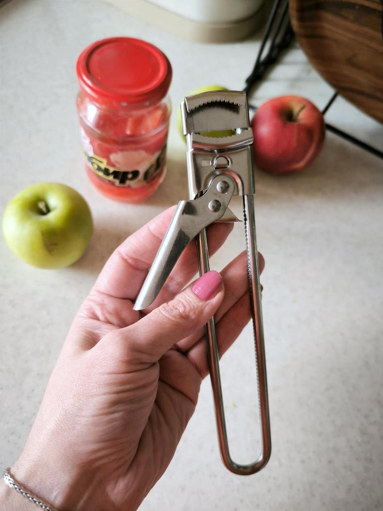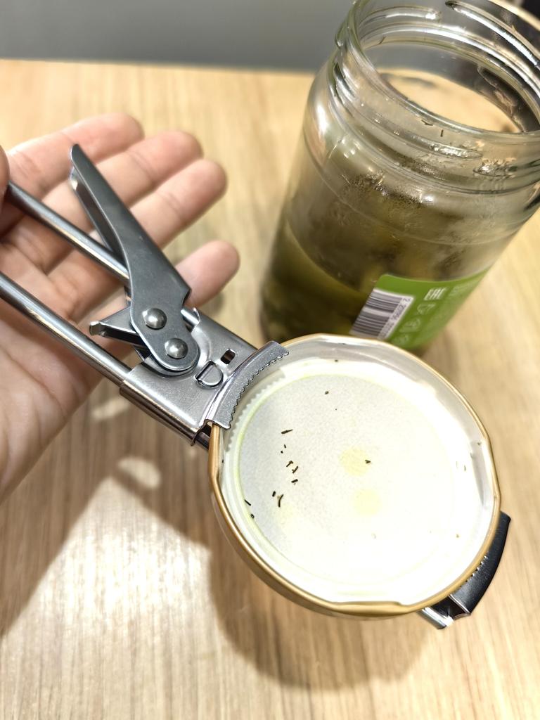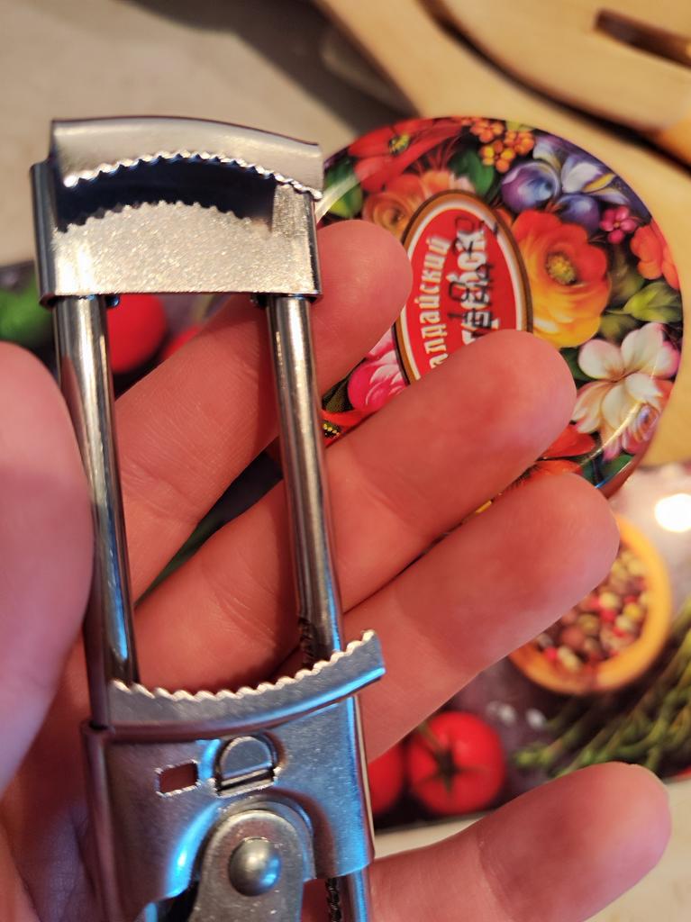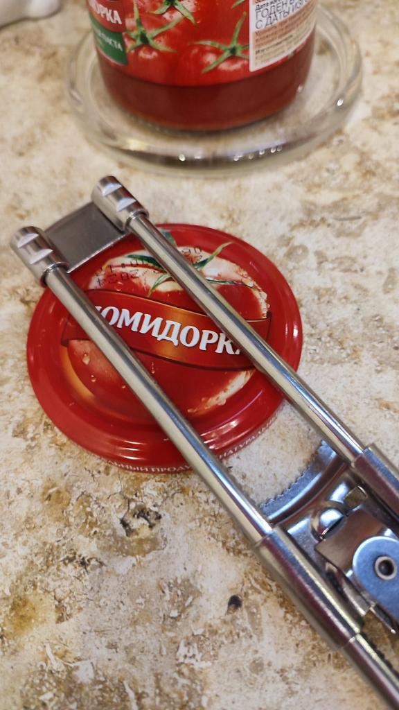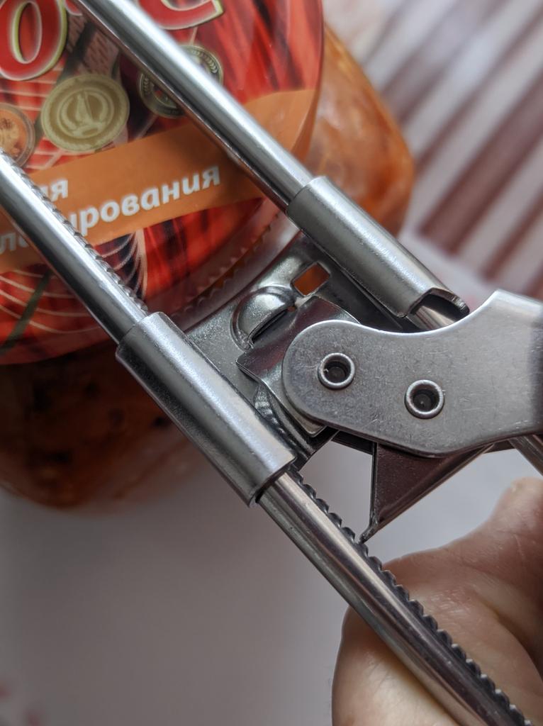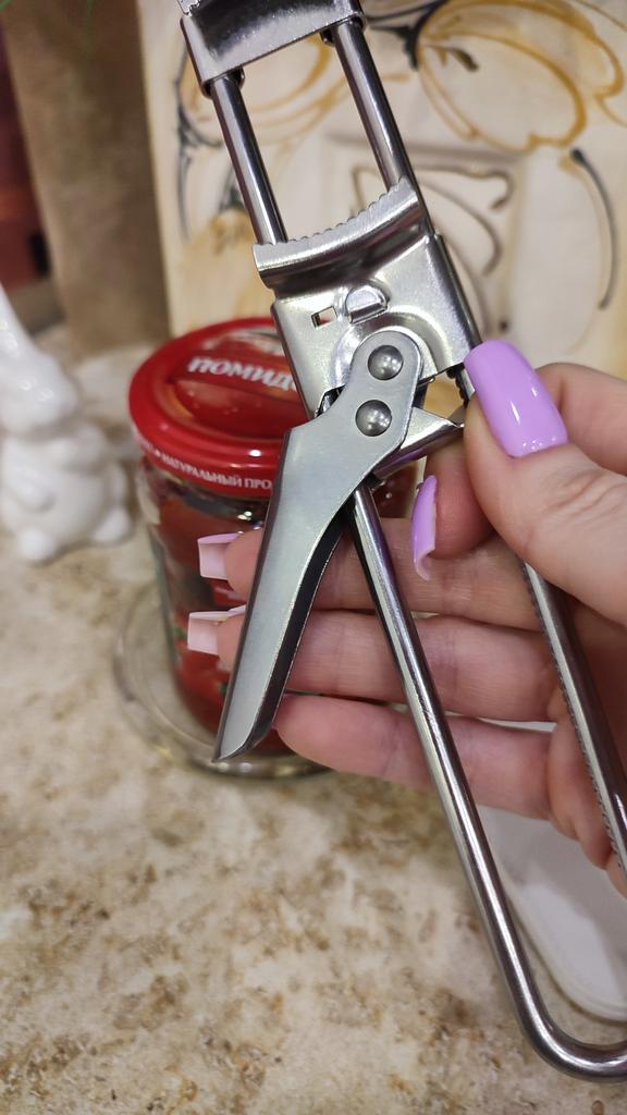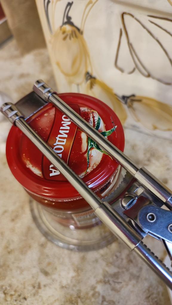 Can opener with twist lids 👌 It is made entirely of stainless steel, all parts are either welded or riveted, so I have no doubt about its durability. Suitable for lids of any diameter - from bottle caps to the largest ones you can find in the kitchen. To open a jar, you need to insert the front part of the opener tightly under the lid, even if it is not possible to place the opener parallel to the lid in this position, press on it. Then we adjust the second part of the opener and move the side handle so that this part jams, then turn it clockwise. And it’s much easier than opening it with your hands - if you do everything correctly, but you need to prepare, I didn’t succeed the first time. #clothing