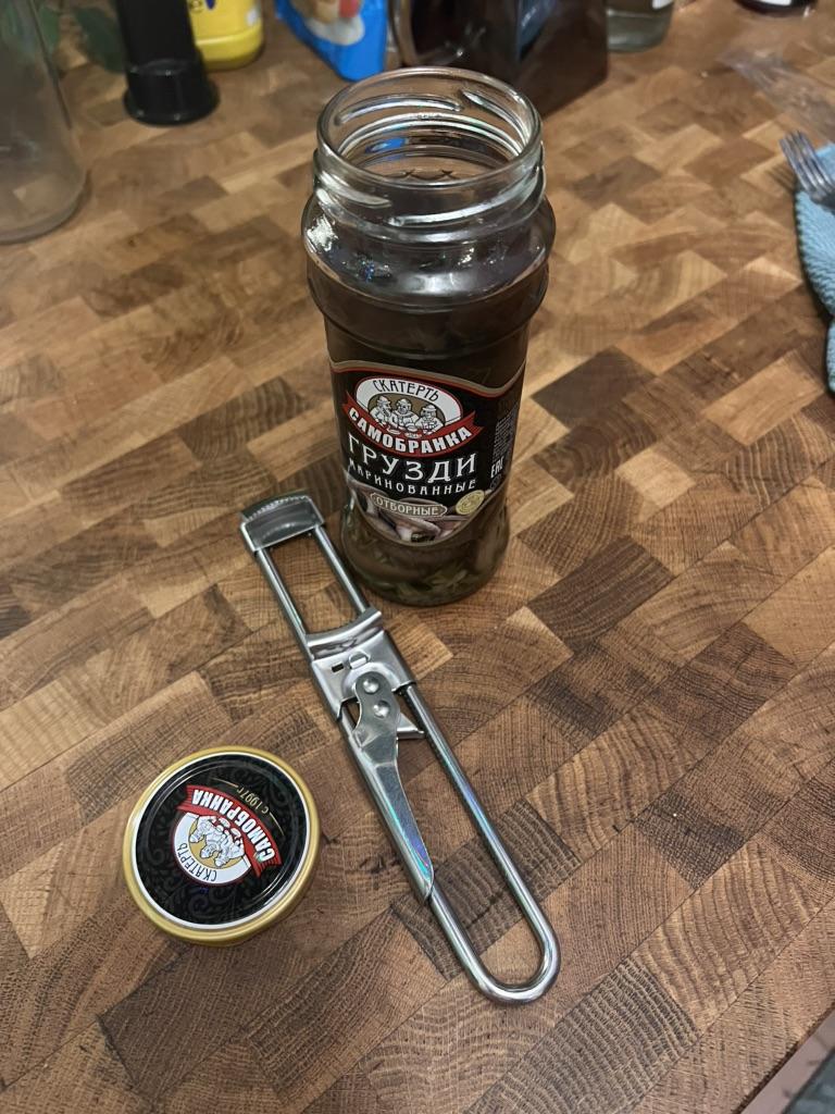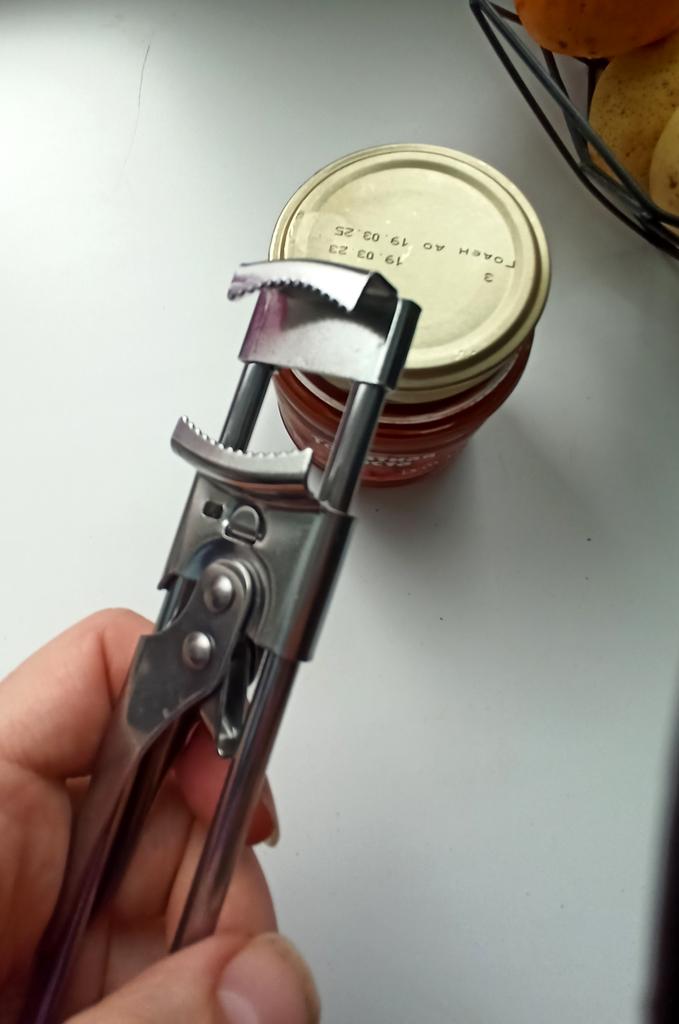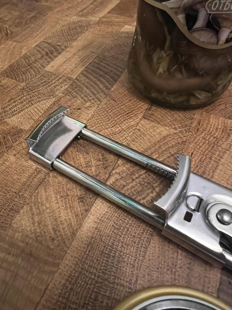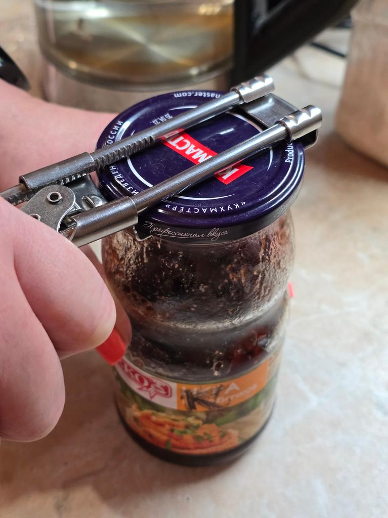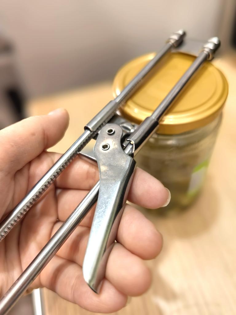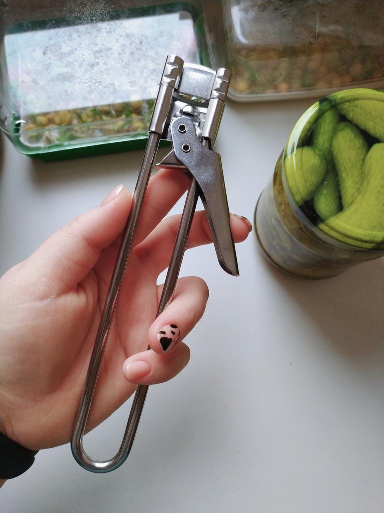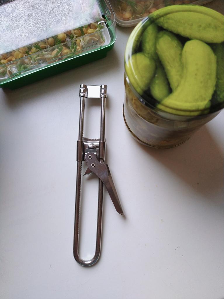 Can opener with twist lids 👌 It is made entirely of stainless steel, all parts are either welded or riveted, so I have no doubt about its durability. Suitable for lids of any diameter - from bottle caps to the largest ones you can find in the kitchen. To open a jar, you need to insert the front part of the opener tightly under the lid, even if it is not possible to place the opener parallel to the lid in this position, press on it. Then we adjust the second part of the opener and move the side handle so that this part jams, then turn it clockwise. And it’s much easier than opening it with your hands - if you do everything correctly, but you need to prepare, I didn’t succeed the first time. #clothing