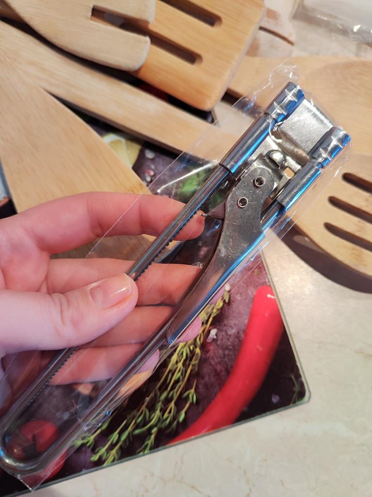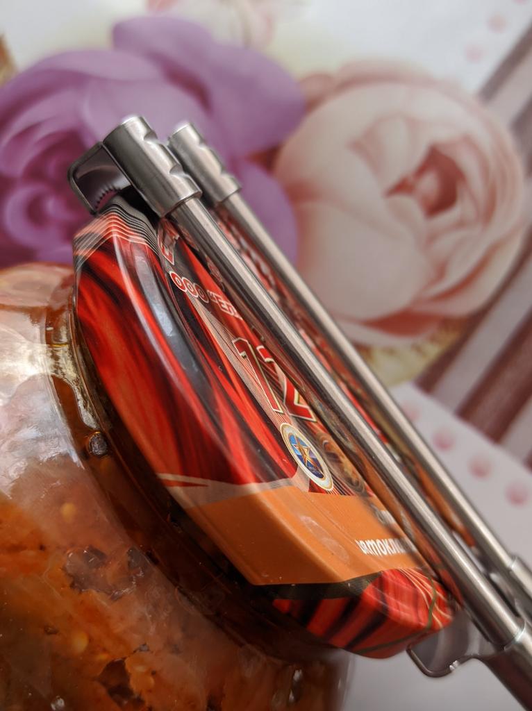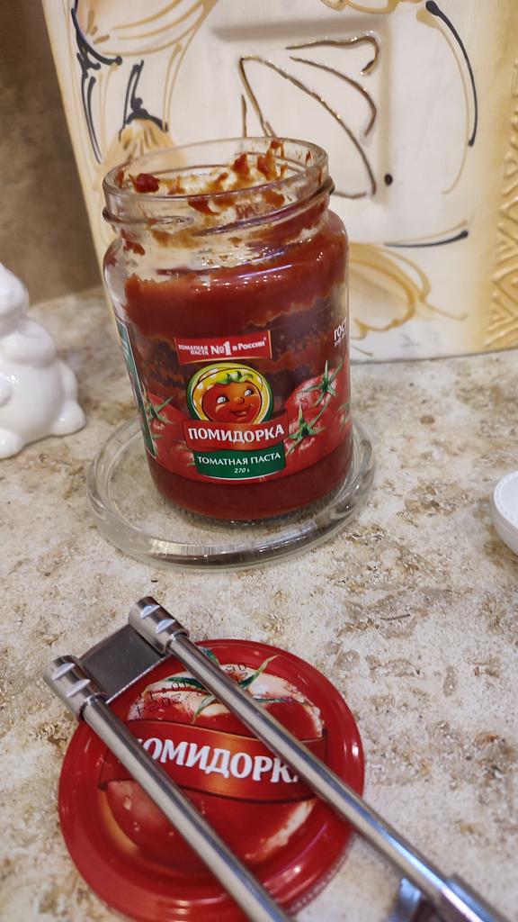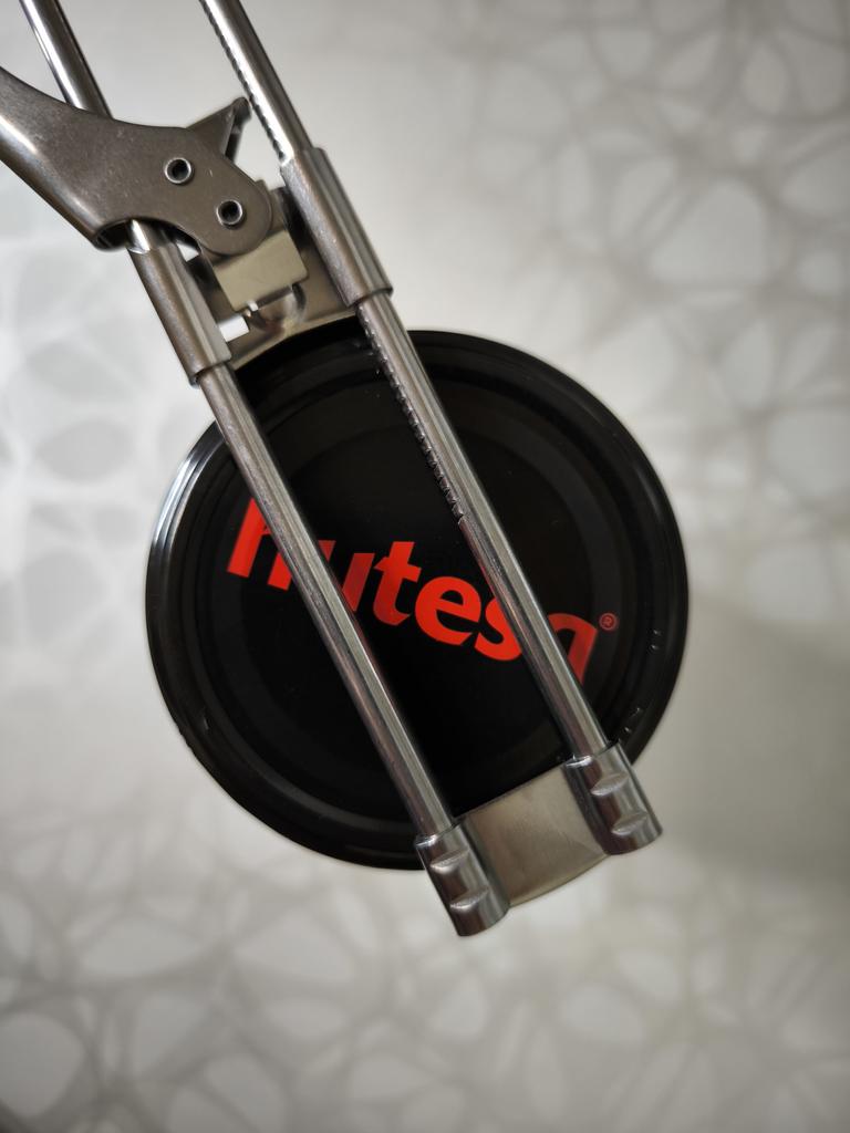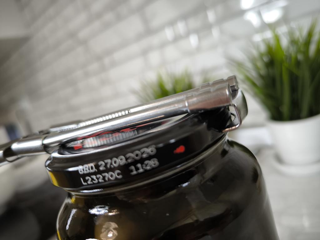 Somehow this opener, we suffered, we barely opened it, or we haven't gotten used to it yet, but we opened it with difficulty, the whole lid was dented, maybe the lid was very tightly sealed, the tool itself is impressive, heavy. I don't know, see for yourself.