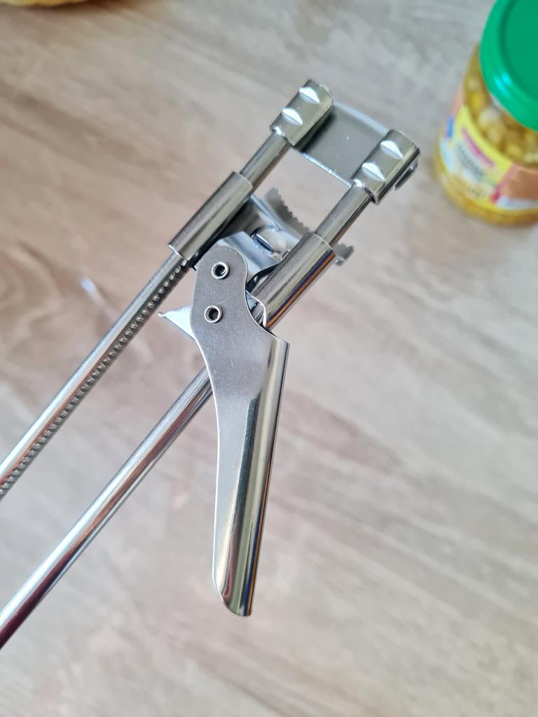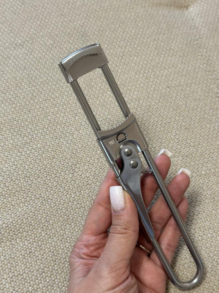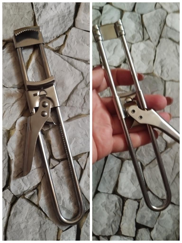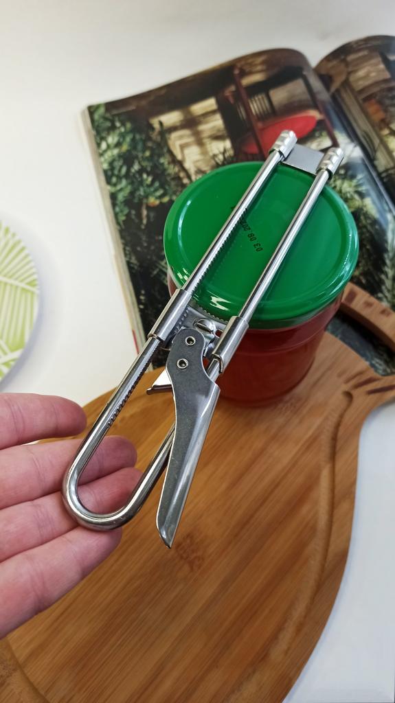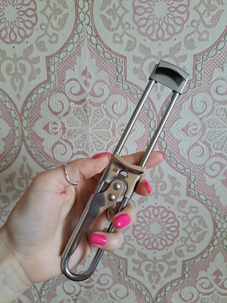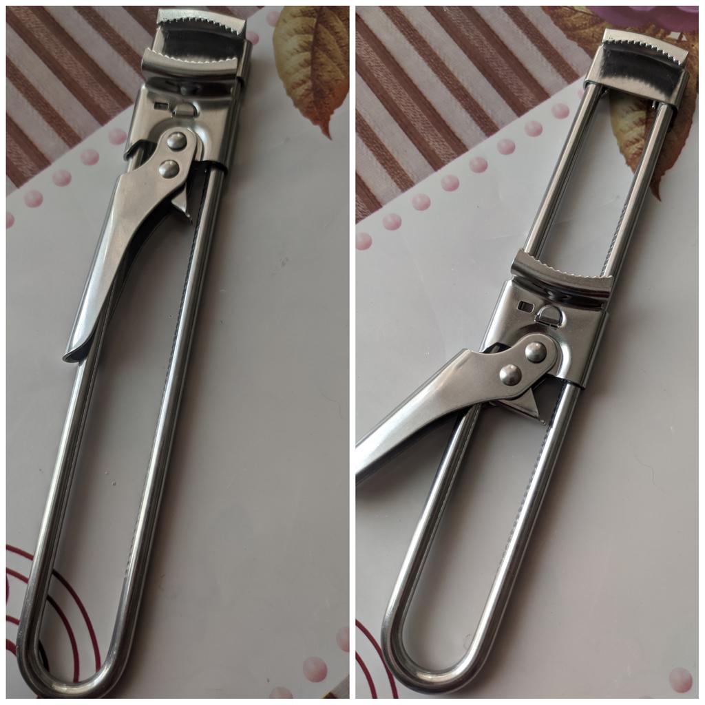 Adjustable opener, for cans with any opening diameter. Made entirely of metal. It is very easy to use, even a child can open tight lids with its help.. ⭐️⭐️⭐️⭐️⭐️ Excellent product, I recommend it 👌🏻