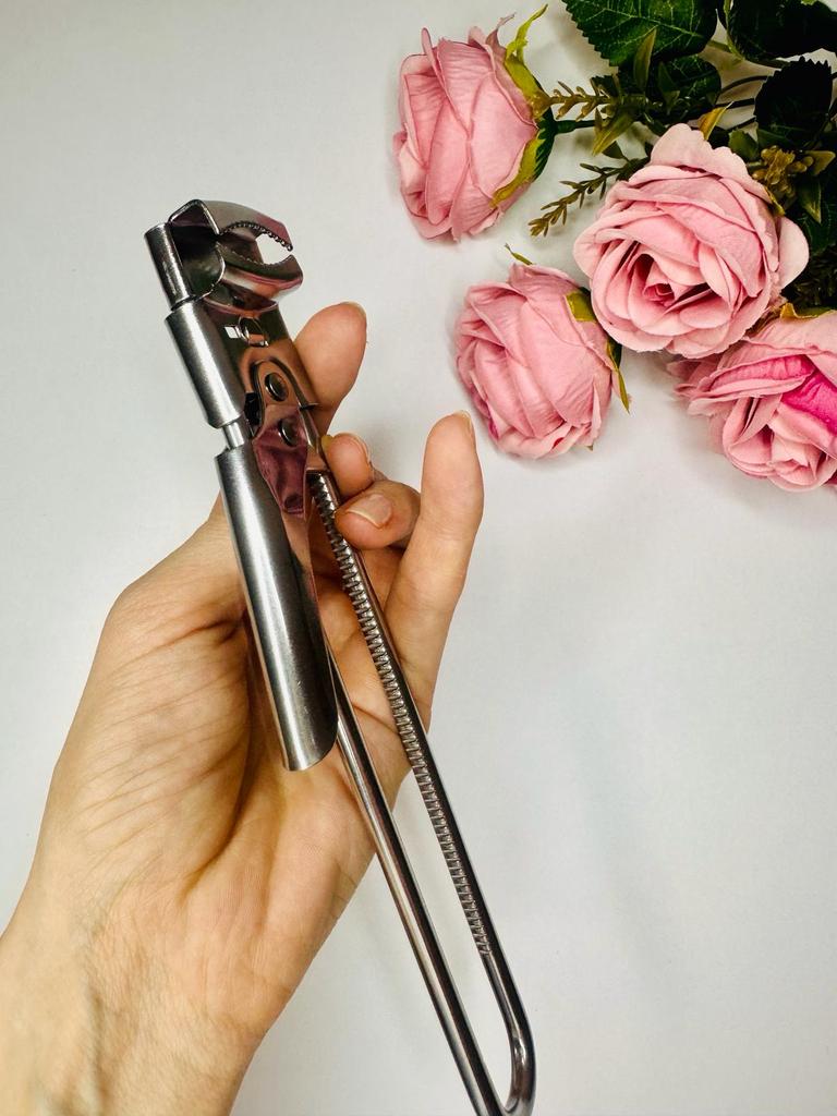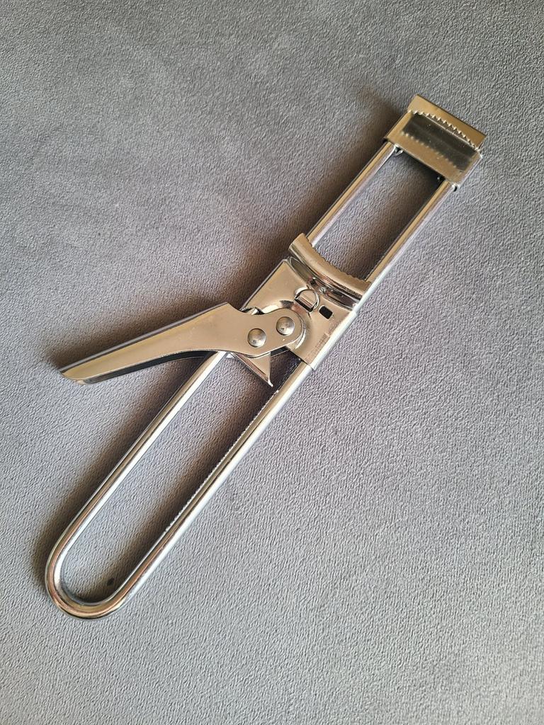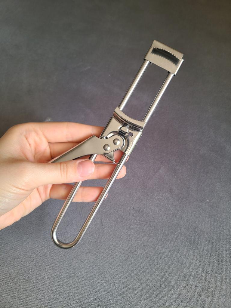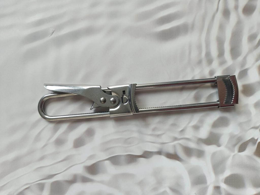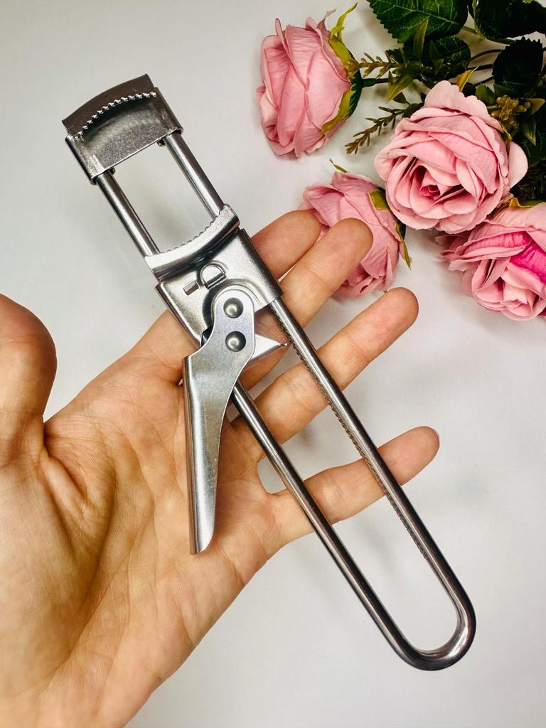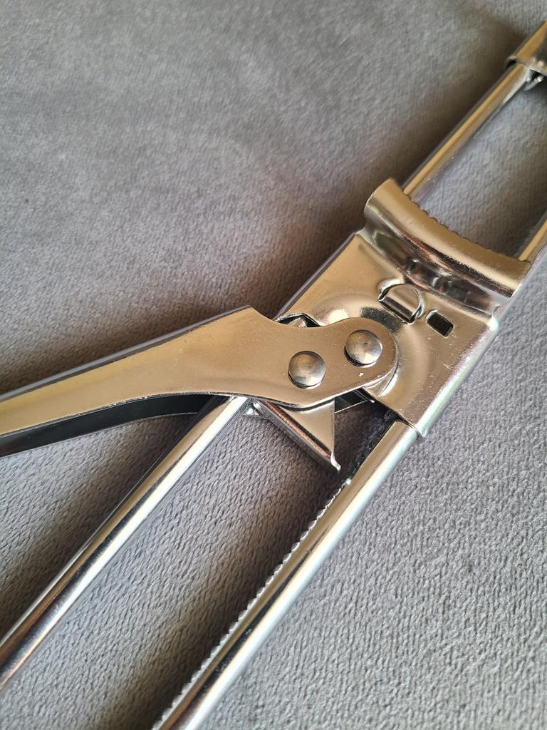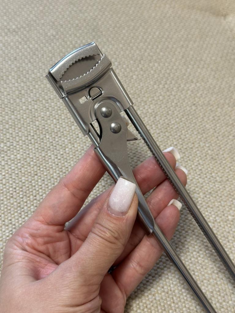 Adjustable opener, for cans with any opening diameter. Made entirely of metal. It is very easy to use, even a child can open tight lids with its help.. ⭐️⭐️⭐️⭐️⭐️ Excellent product, I recommend it 👌🏻