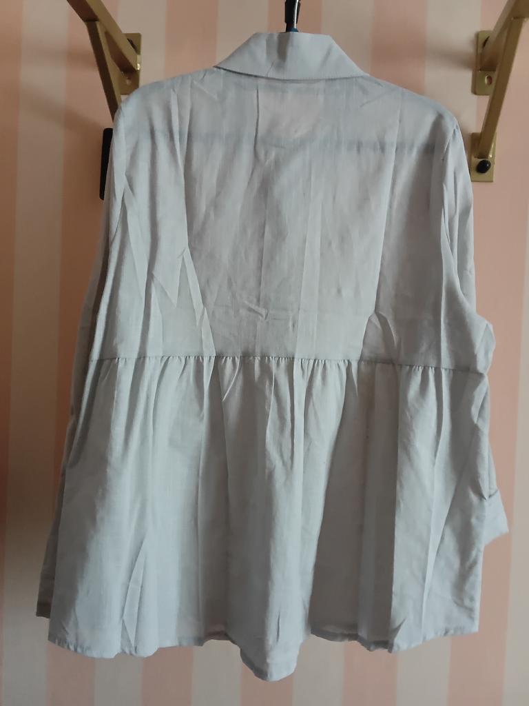 The bust is very small, and the shirt is very short in length, the fabric seems like linen, it looks completely different in the picture, and the style is fitted and short, pay attention to this if you are going to buy it, I don't even know what I will wear it with, but the color and fabric are good. And there is also a little gift, which is nice.
