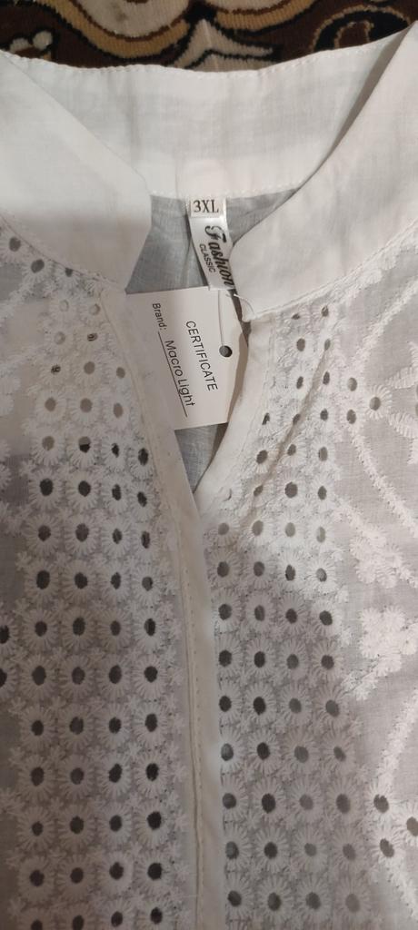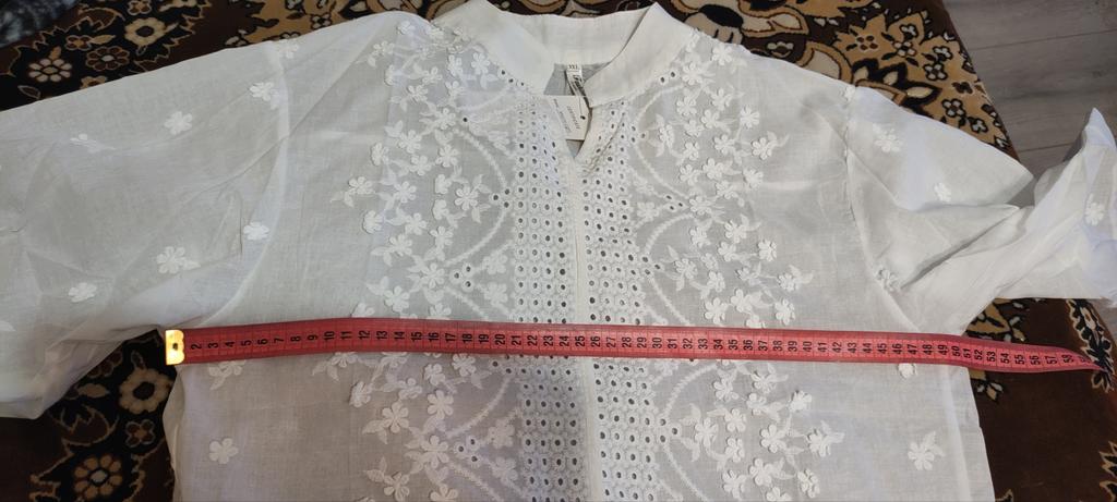 Blouse made of thin cotton. Neat embroidery. A bit small in the chest. Loose sleeves. Overall good for summer. But it's better to order 1 size bigger.
