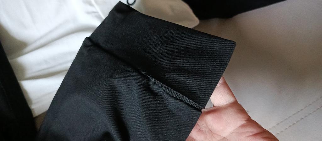 Everything is ok, but the chain on the chest is strange, and sewn right on top of an even stranger... Buttonholes? And the length of the sleeves is unclear, either 3/4 or full...