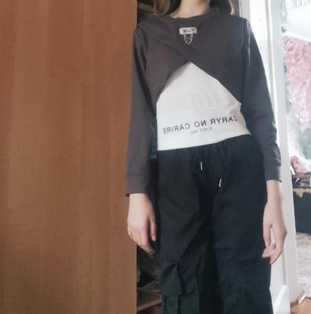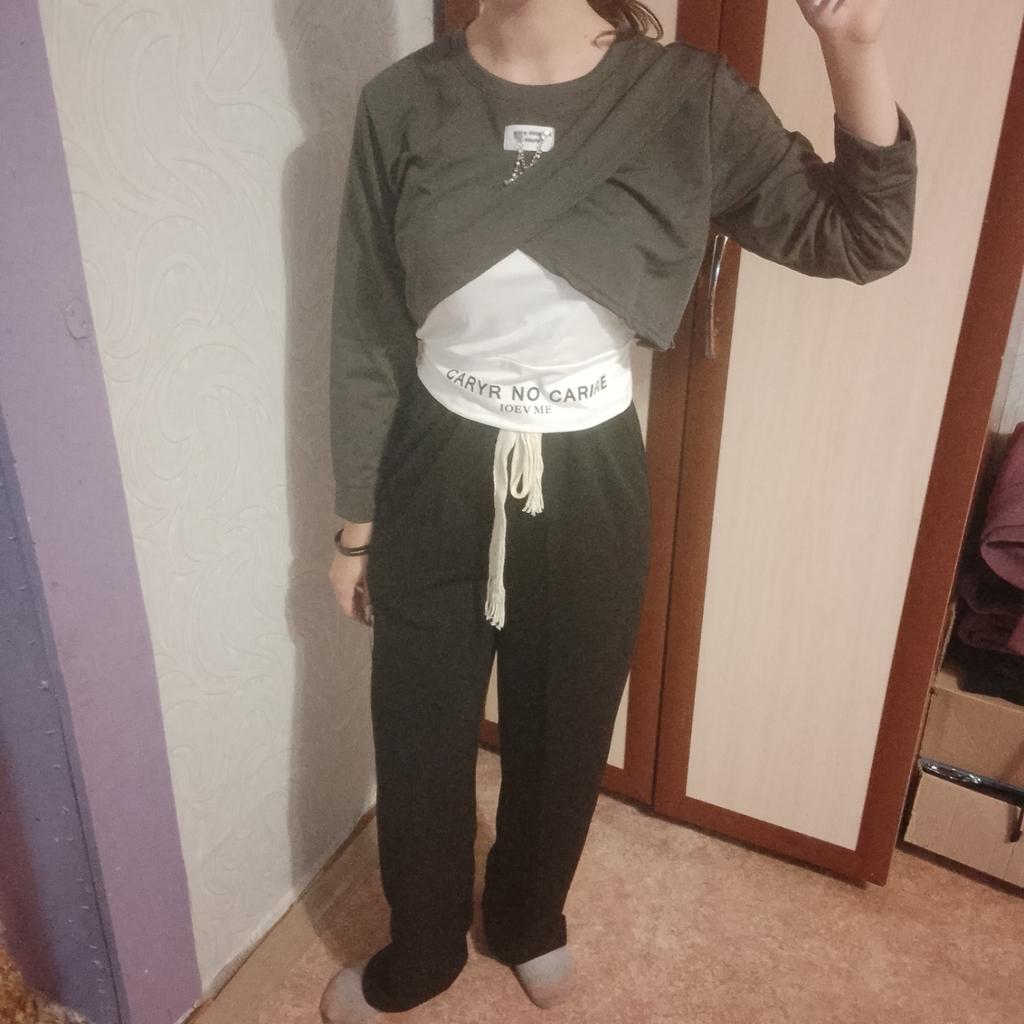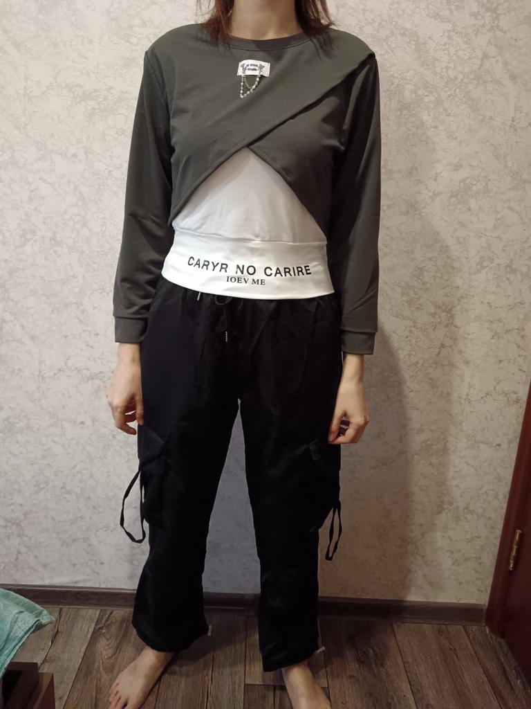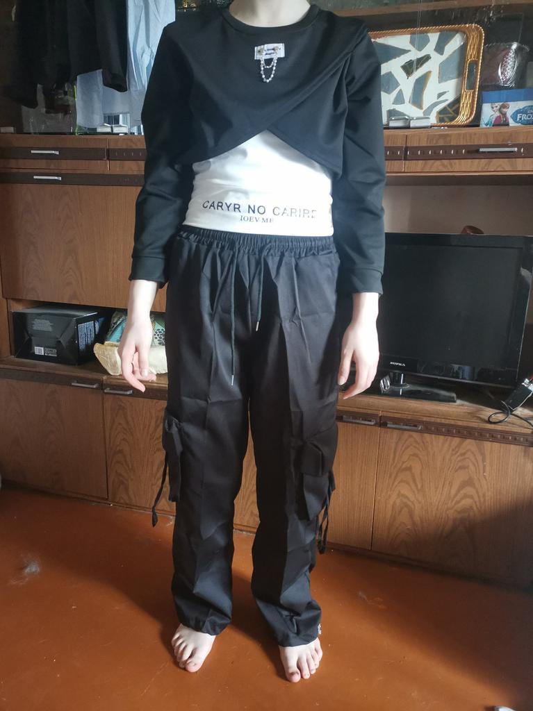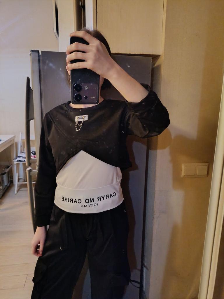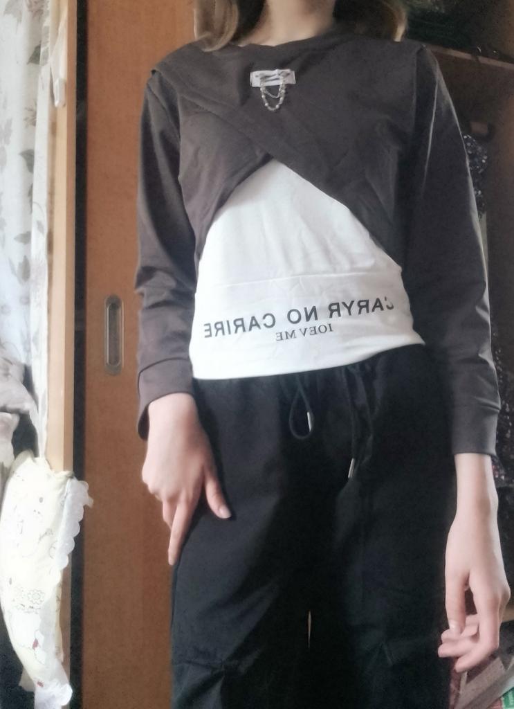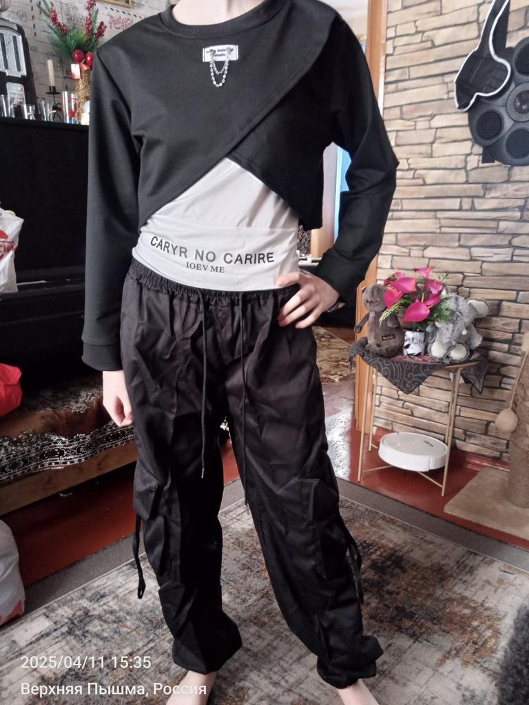 Doesn't really match the description. It's stated that it's for autumn spring... but the fabric is thin, only suitable for summer wear. The top is cute, the upper part doesn't quite match the photo, the sleeves are narrower. The color of the pants is much darker than in the photo. Overall, a disappointment. It can be worn, but not wow... the quality is so-so, threads stick out