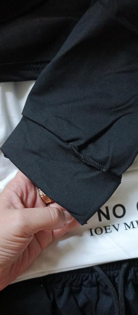 Very nice suit, only the jacket was a bit disappointing The sleeves are short and in the picture it looks like a warm sweater, but in reality it is very light, just right for summer.