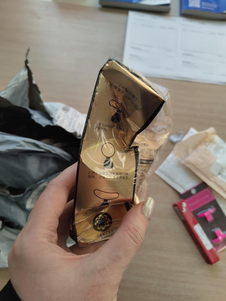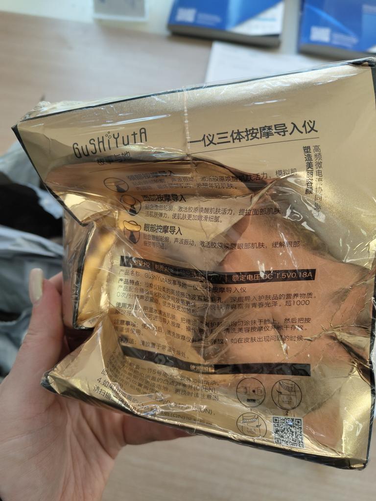 Everything arrived in a torn, crumpled box. This is not microcurrent! It just vibrates, that's all.