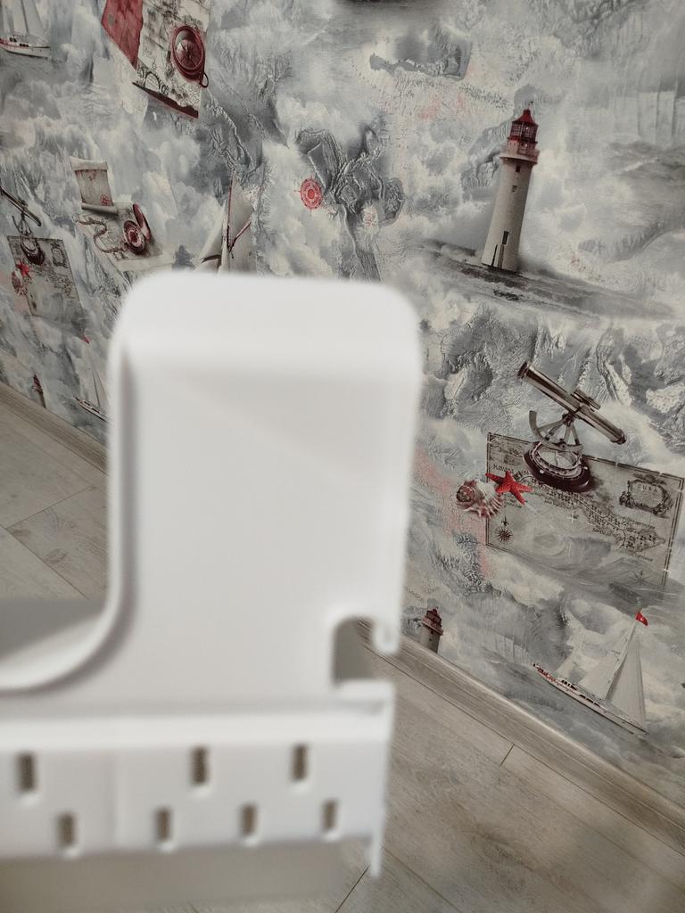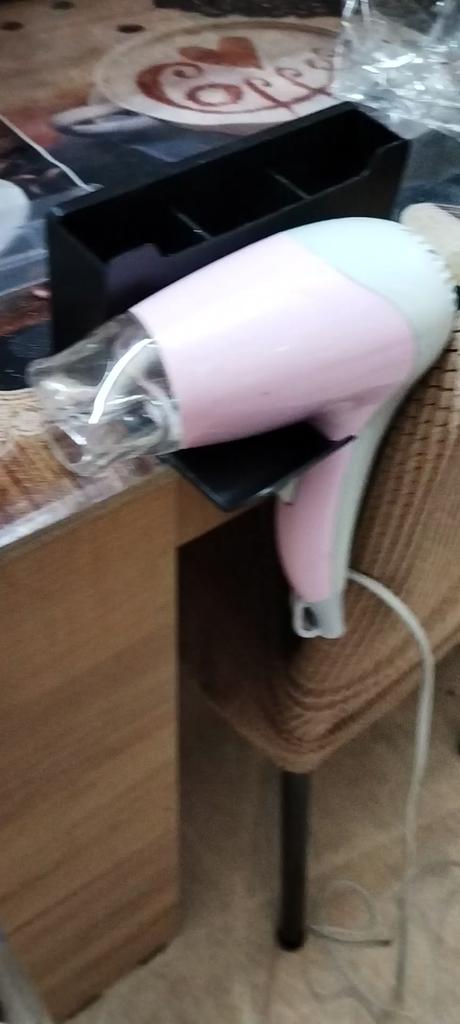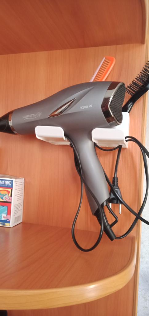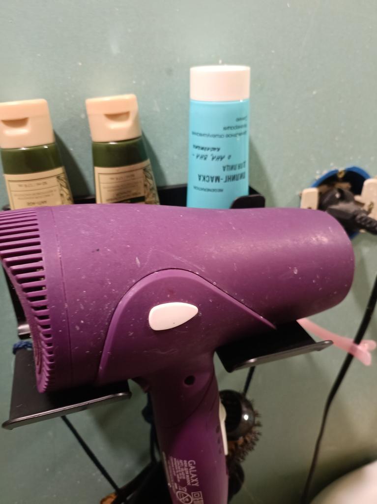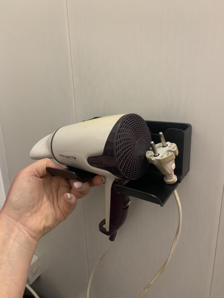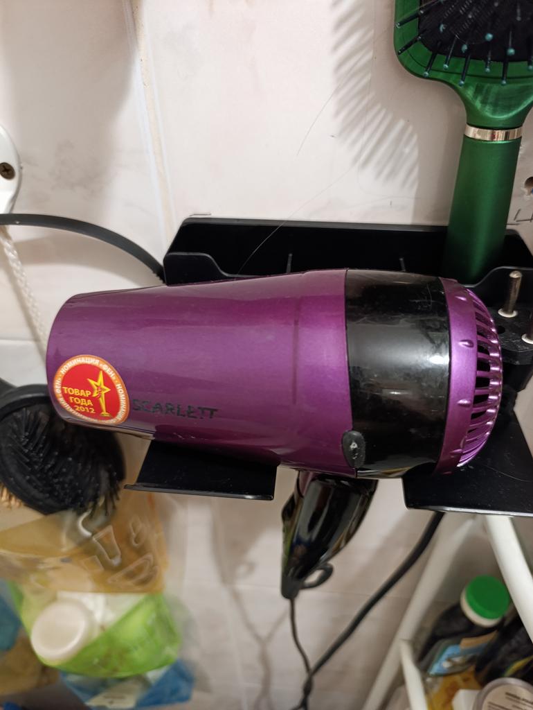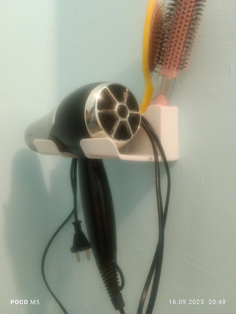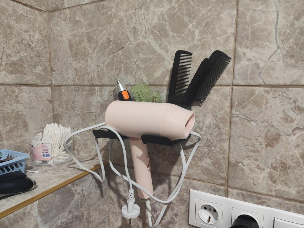 The rack in the photo seems bigger, but in reality it is small, the hair dryer does not fit, it is good, but a bit small