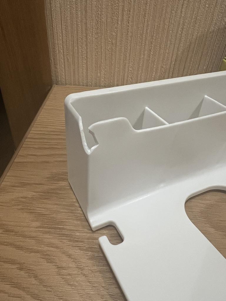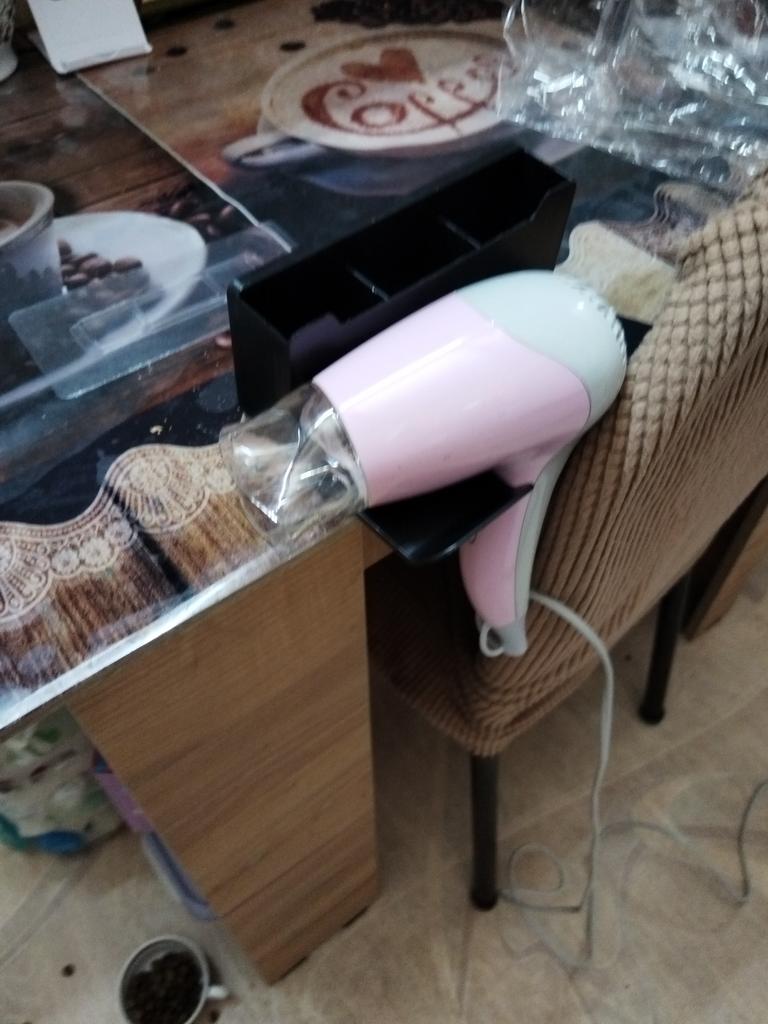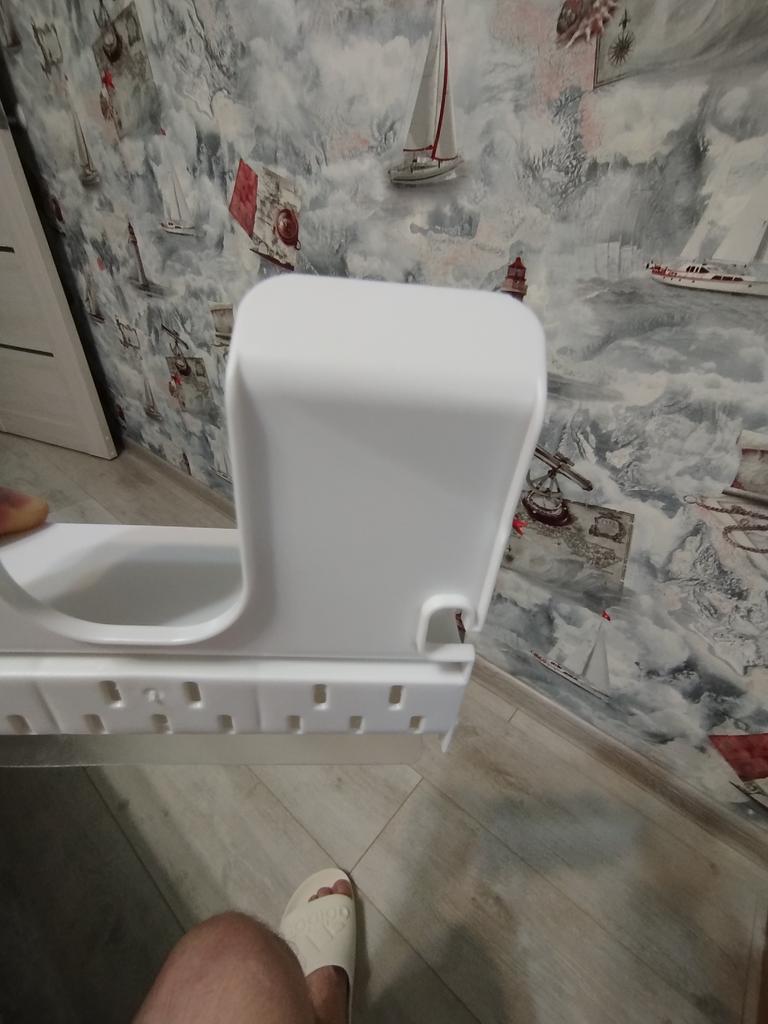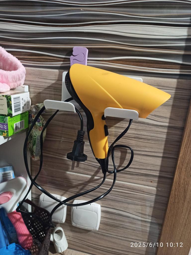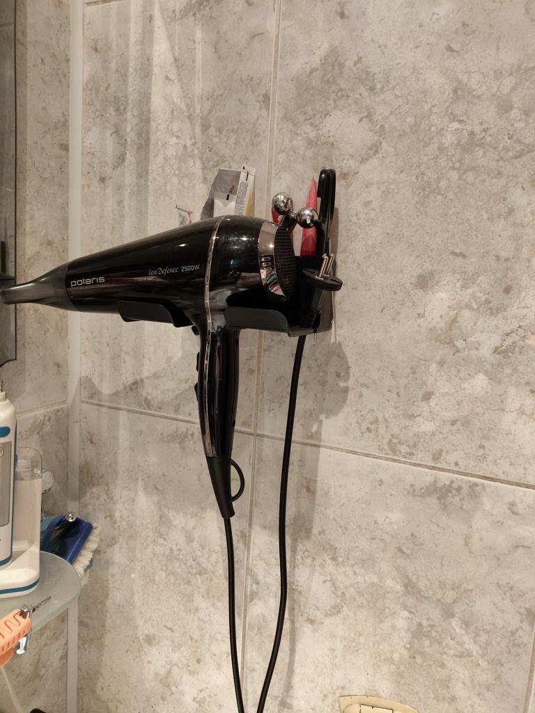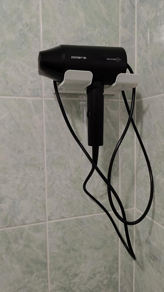 It is glued with double-sided tape, it does not hold at all, the floor falls off with the weight of the hair dryer, the plastic itself looks terrible, all smudged, but for such a price you would not expect anything else)