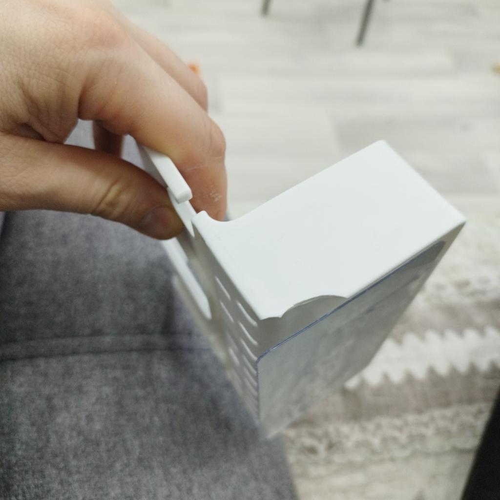 The plastic is thin. It looks good on the wall. The hairdryer will always be in its place. I bought it for my grandson for the bathroom. It fits into the interior perfectly! My grandson is happy!