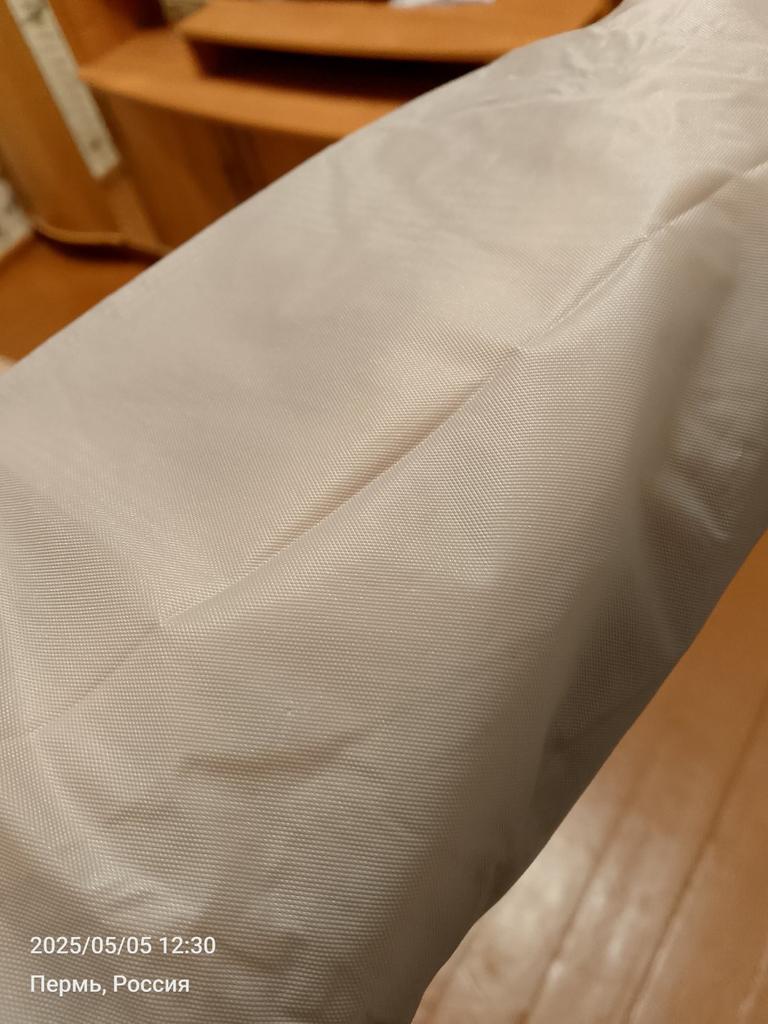 The item arrived with a defect, a hole on the hood in the area of attachment to the neckline.